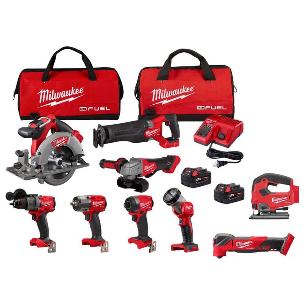Tools Included Hammer drill/driver, 1/4 in. impact driver, 1/2 in. mid‑torque impact wrench, reciprocating saw, 6‑1/2 in. circular saw, 4‑1/2 in./5 in. grinder, LED work light; plus multi‑tool and jig saw