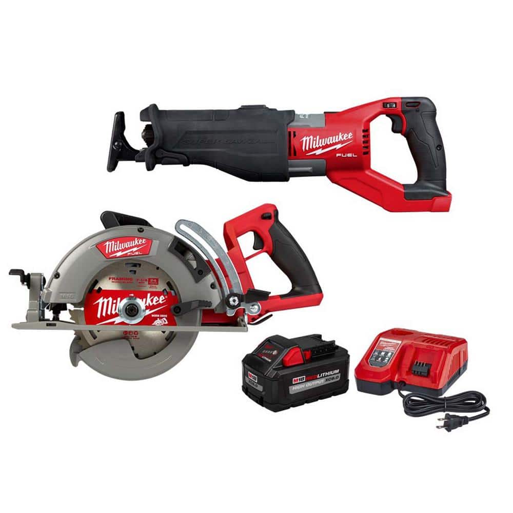 Milwaukee M18 FUEL 18V Lithium-Ion Brushless Cordless Super SAWZALL w/7-1/4 in. Circ Saw & 8.0ah Starter Kit