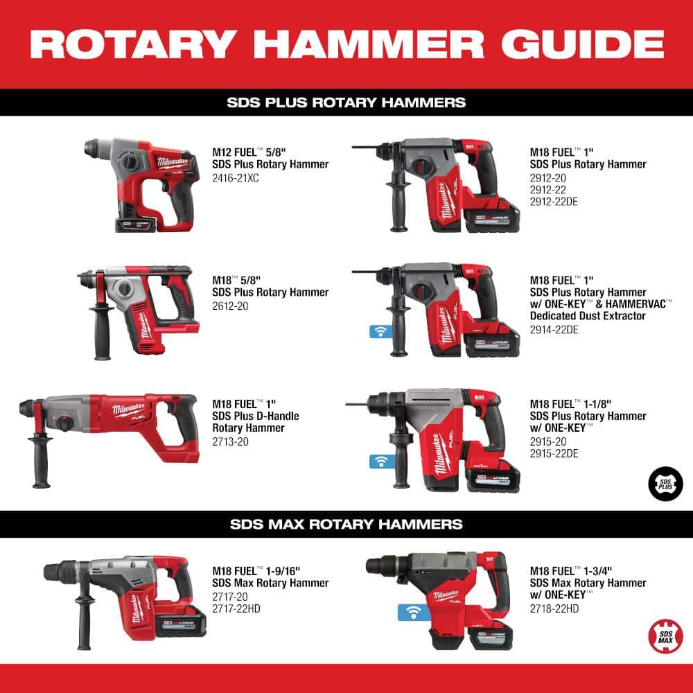 The Milwaukee M18 FUEL ONE-KEY 18V Lithium-Ion Brushless Cordless 1-1/4 in. SDS-Plus Rotary Hammer Kit revolutionizes jobsite efficiency with its powerful performance and intelligent ONE-KEY technology. Engineered for unrivaled safety and durability, this rotary hammer offers rapid drilling speeds and is optimized for both pro and DIY applications. Elevate your work with unmatched impact energy and cooler operation, making it the ideal cordless replacement for your most demanding tasks.