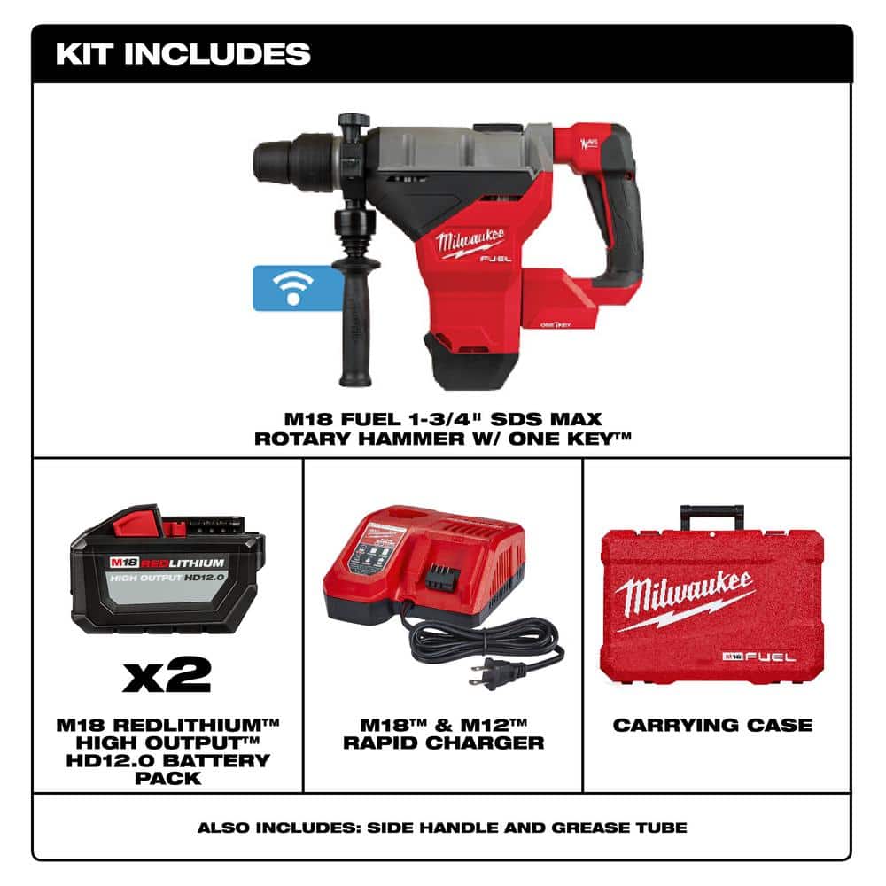 Milwaukee M18 FUEL ONE-KEY 18V Lithium-Ion Brushless Cordless 1-3/4 in. SDS-MAX Rotary Hammer Kit and M18 FUEL Impact Wrench