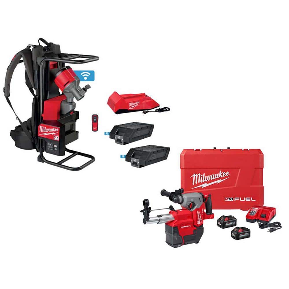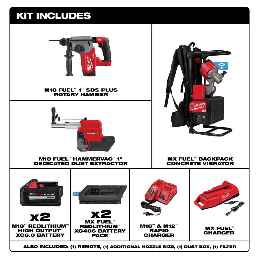 Milwaukee MX FUEL Lithium-Ion Cordless Concrete Vibrator Kit with M18 FUEL 1 in. SDS-Plus Rotary Hammer/Dust Extractor Kit