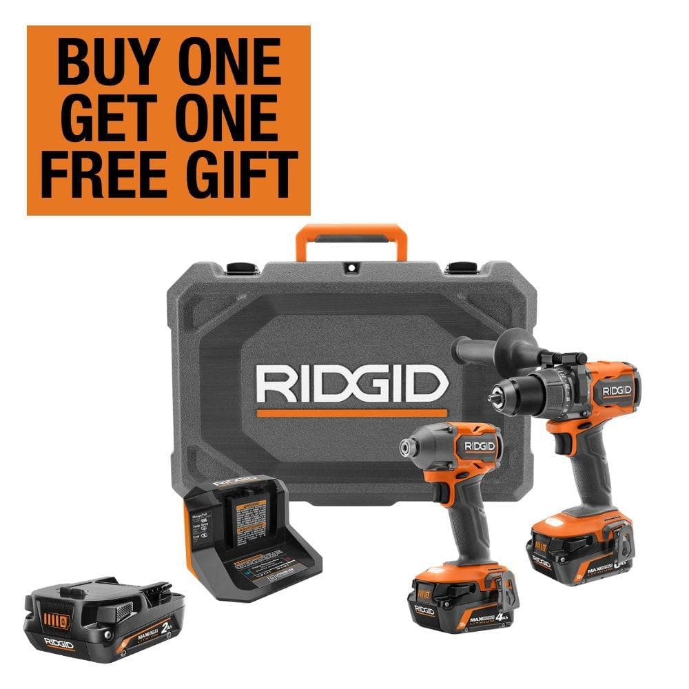 RIDGID 18V Brushless Cordless 2-Tool Combo Kit with 6.0Ah & 4.0Ah MAX Output Batteries, Charger, and 2.0 Ah Battery