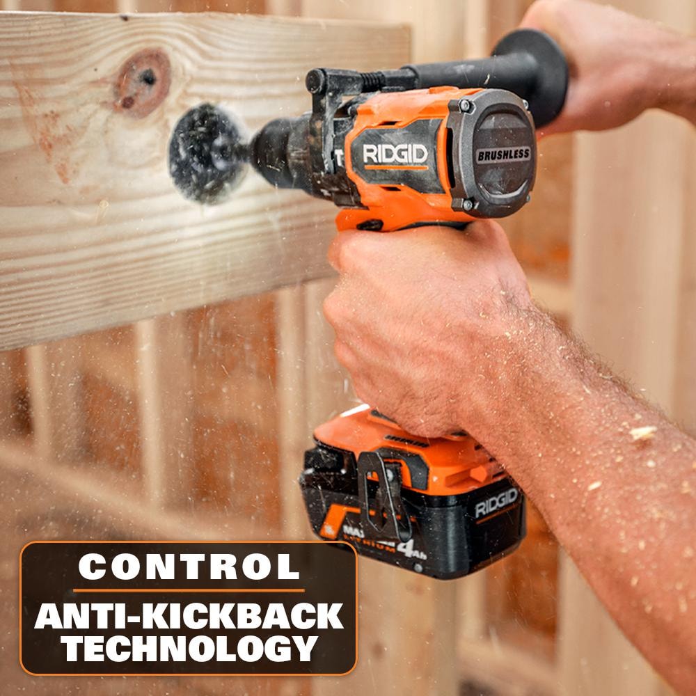 Experience unmatched power and efficiency with RIDGID's 18V Brushless Cordless Combo Kit. Featuring a high torque hammer drill and a 4-mode impact driver, this kit is powered by high-capacity MAX Output batteries for extended runtime and enhanced performance. Benefit from cutting-edge anti-kickback technology and a Lifetime Service Agreement, making this the ultimate choice for both pro contractors and ambitious DIYers.