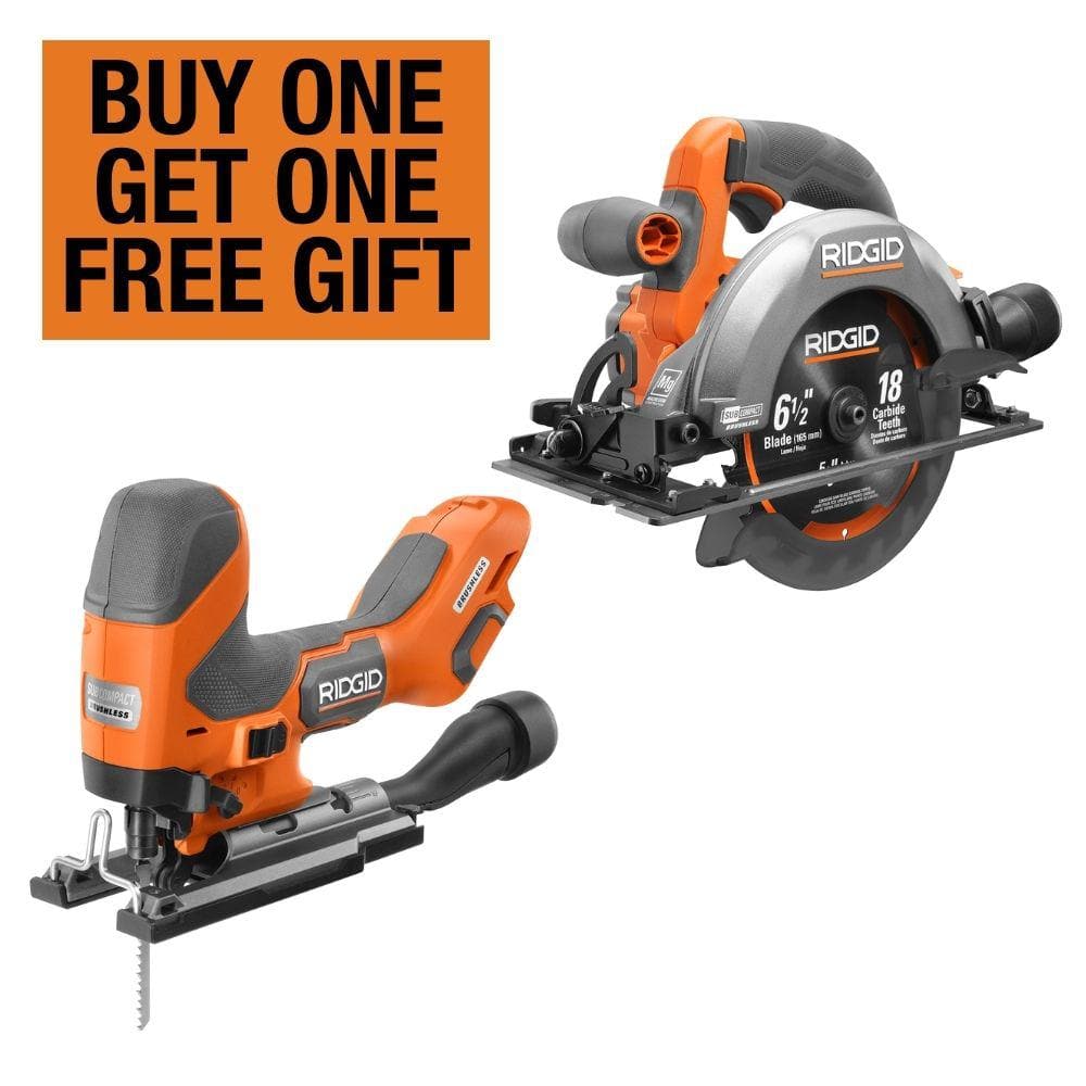 RIDGID 18V SubCompact Brushless Cordless 2-Tool Combo Kit with Barrel Grip Jig Saw and 6-1/2 in. Circular Saw (Tools Only)