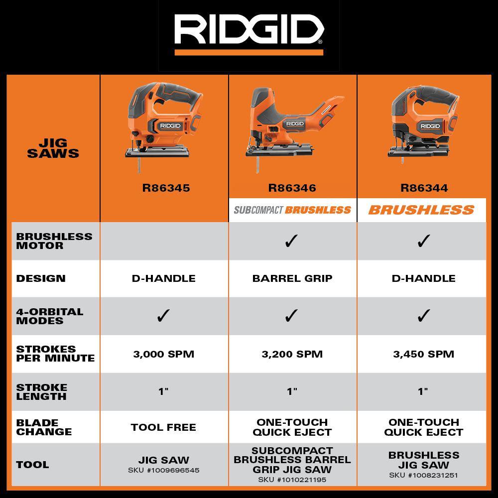 RIDGID 18V SubCompact Brushless Jig Saw Kit