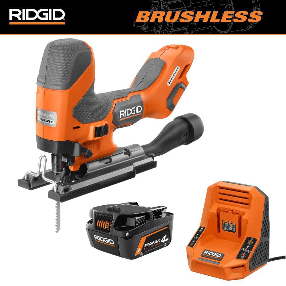 RIDGID 18V SubCompact Brushless Cordless Barrel Grip Jig Saw Kit with 18V 4.0Ah MAX Output Battery and Rapid Charger