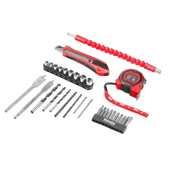 A: Yes, the Ronix RS-8013 kit includes a comprehensive set of 35 accessories, such as drill bits, a measuring tape, and a utility knife, to get you started on various projects immediately.