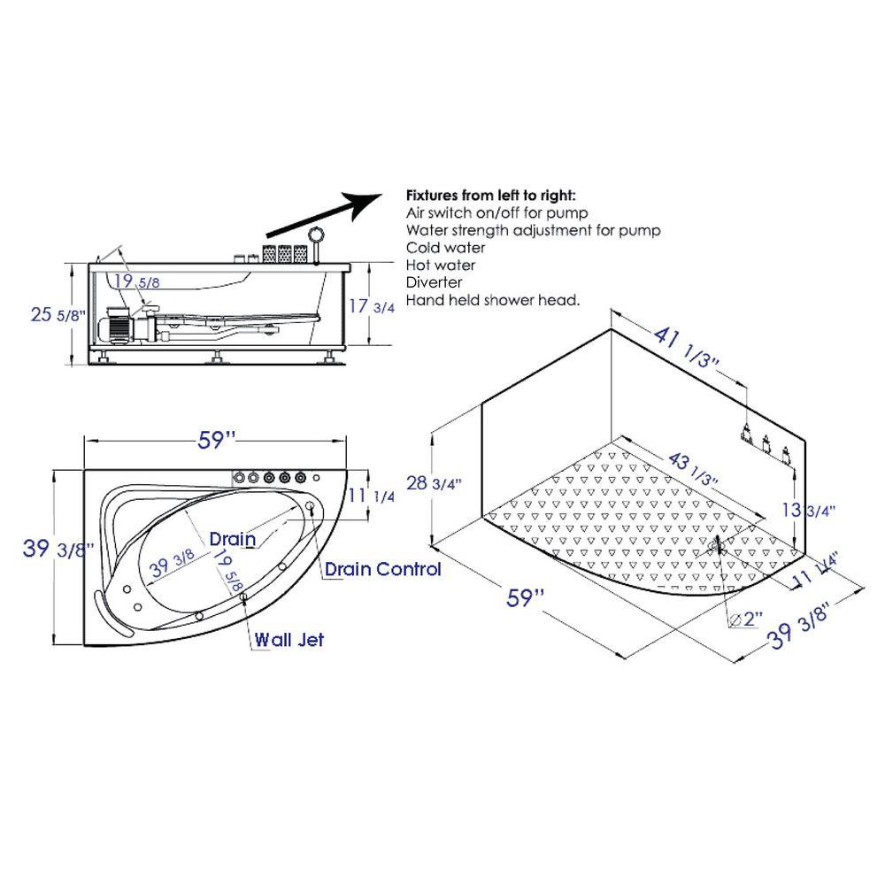 59 in. Acrylic Right Drain Corner Apron Front Whirlpool Bathtub in White