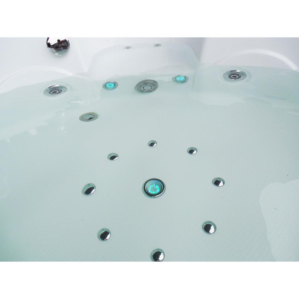 • 250-Watt air pump with 8 air nozzles, 8-piece front apron lights (changing colors), air jet control system, 3 big LEDs underwater light, 2 padded headrests