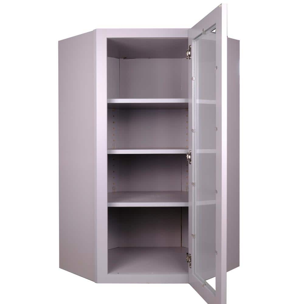 Bremen Cabinetry Bremen 24 in. W x 12 in. D x 42 in. H Gray Plywood Assembled Wall Diagonal Corner Glass-Door Kitchen Cabinet