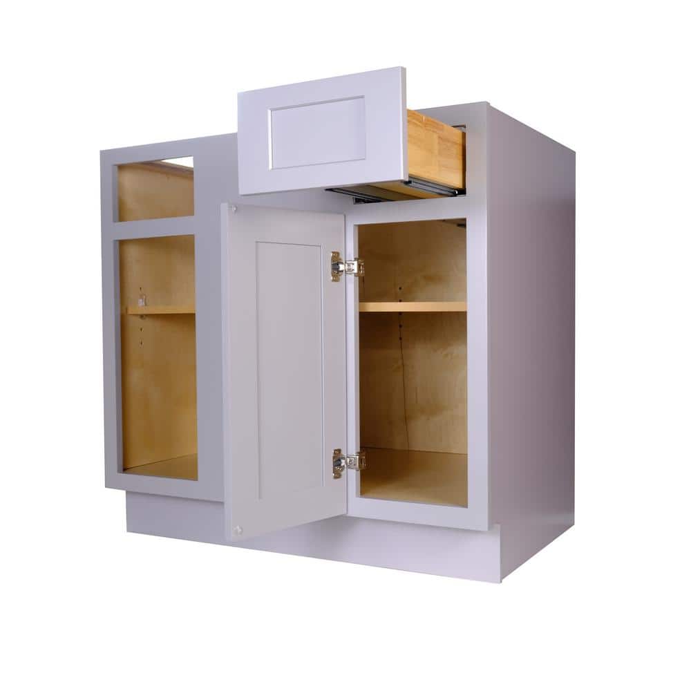 The Bremen 42-inch Gray Blind Corner Base Cabinet is a perfect blend of style and functionality, featuring a sleek light gray finish and robust plywood construction. Its soft-close drawers and adjustable shelving make it an ideal choice for kitchens demanding both aesthetics and practicality. Enjoy the elegance and efficient storage solutions this cabinet brings to your modern kitchen.
