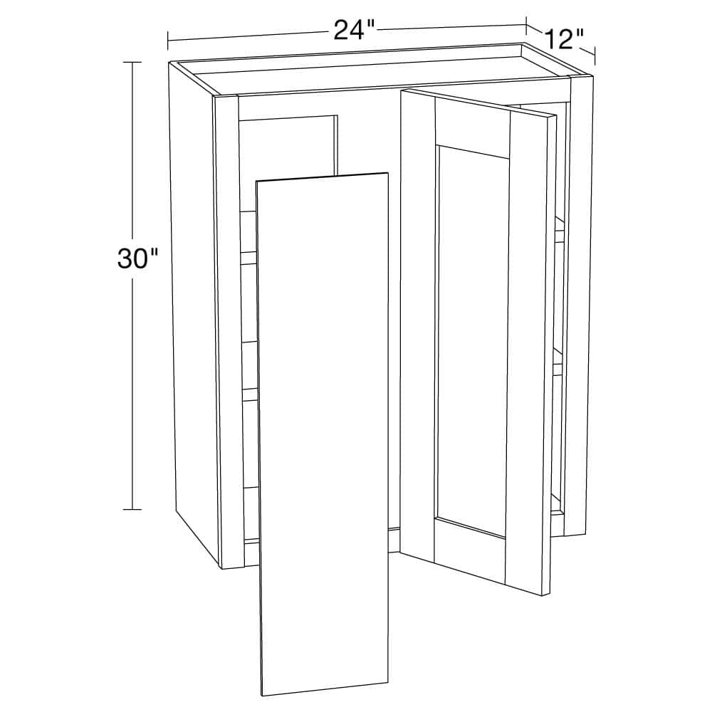 A: This cabinet measures 24 inches wide, 12 inches deep, and 30 inches high, making it ideal for kitchen corner spaces.