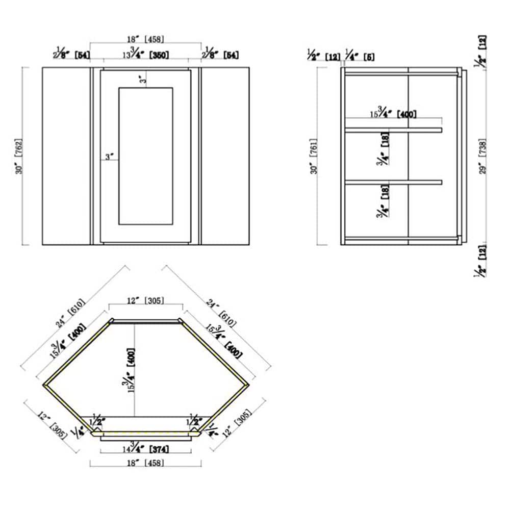 Design House Brookings Solid Wood Assembled Shaker 24 in. x 30 in. x 12 in. 1 Door Corner Wall Kitchen Cabinet WAC2430 in White