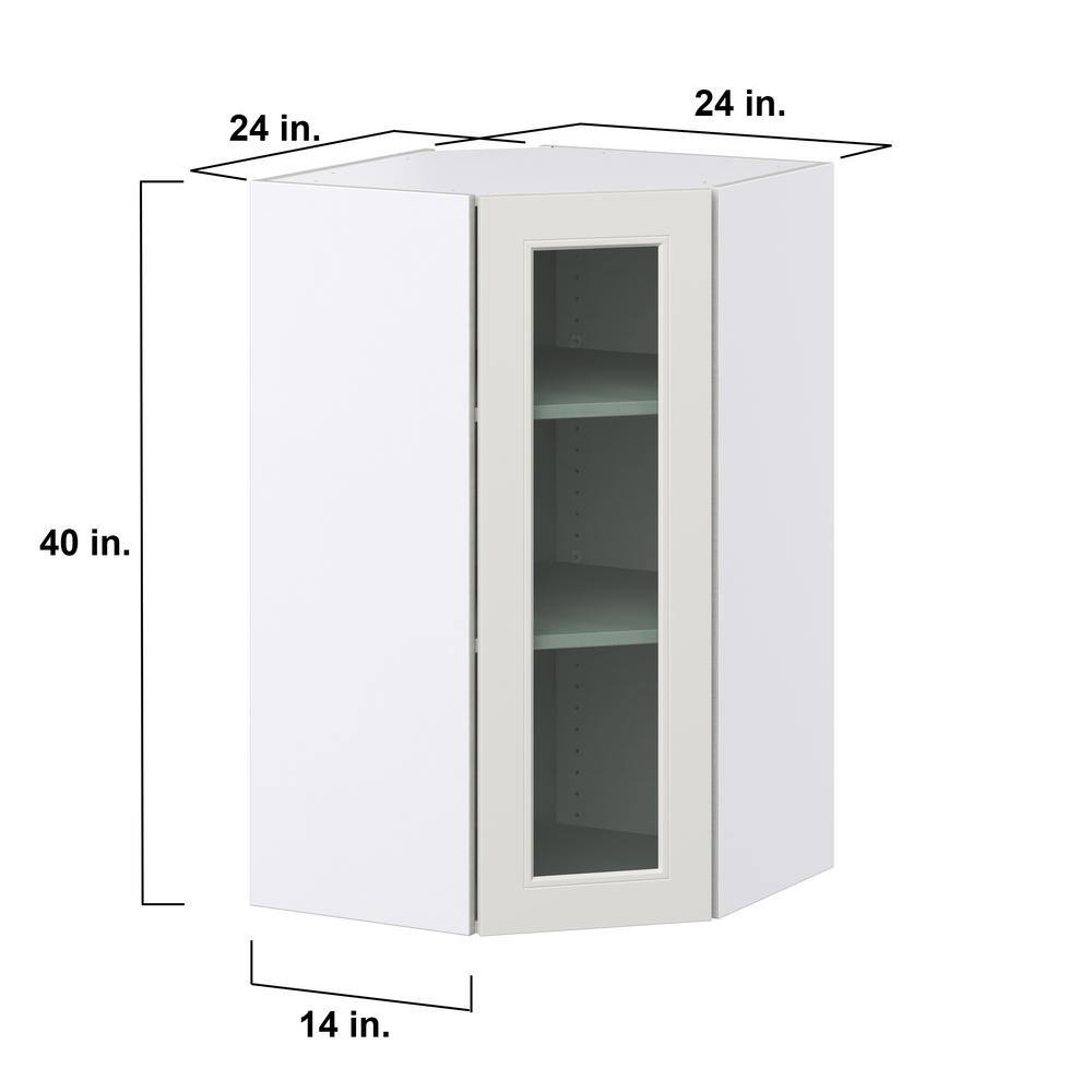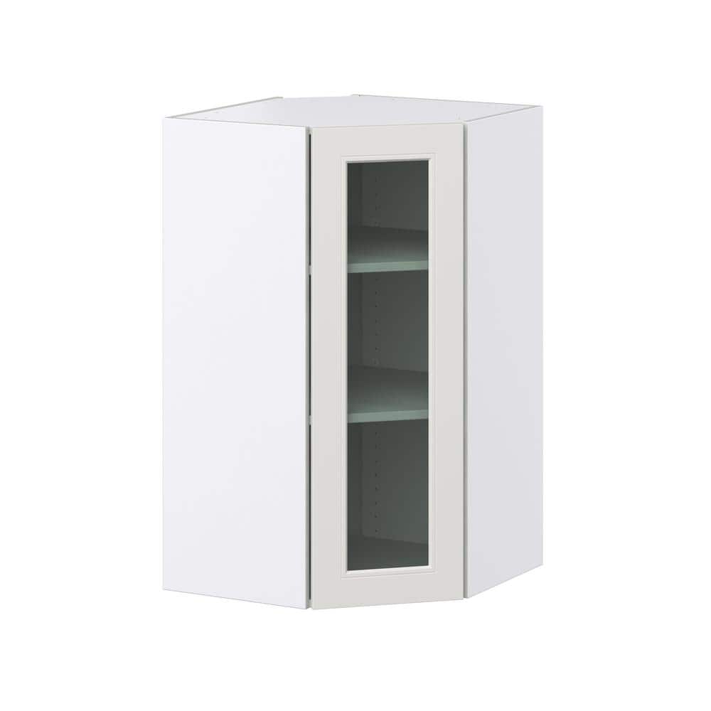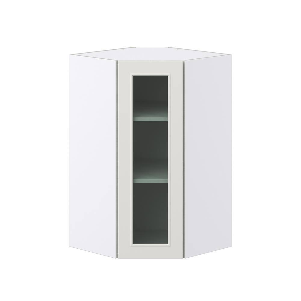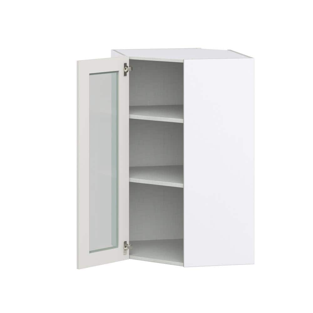 J COLLECTION 24 in. W x 40 in. H x 14 in. D Littleton Painted Light Gray Recessed Assembled GlassWall Diagonal Corner Kitchen Cabinet