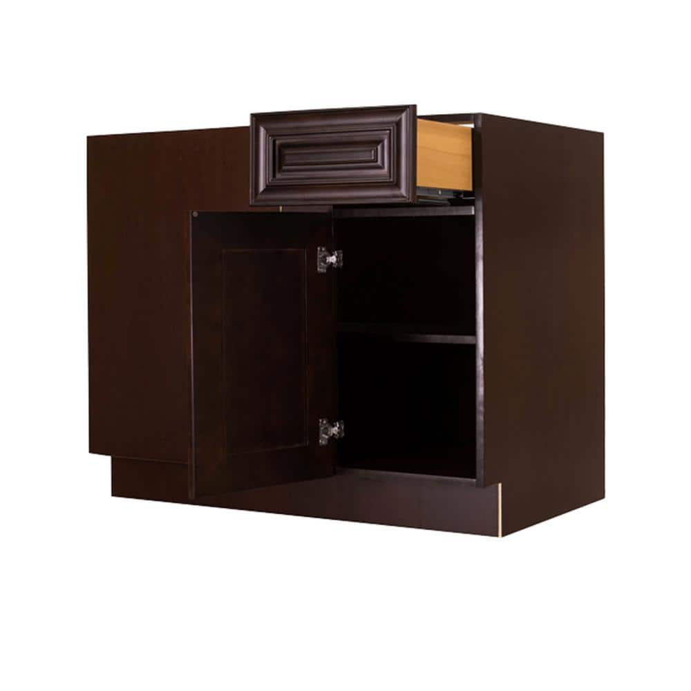 LIFEART CABINETRY Edinburgh Espresso Plywood Raised Panel Stock Assembled Base Corner Kitchen Cabinet (39 in. W x 34.5 in. H x 24 in. D)
