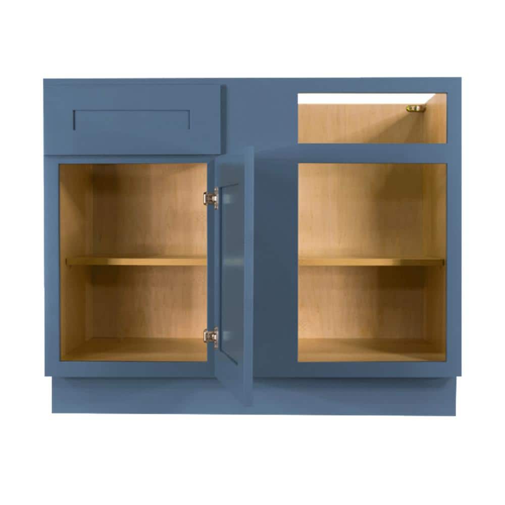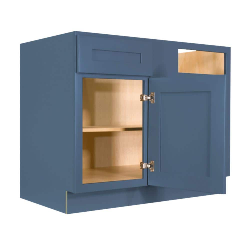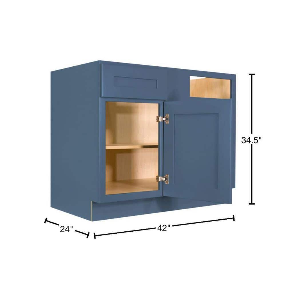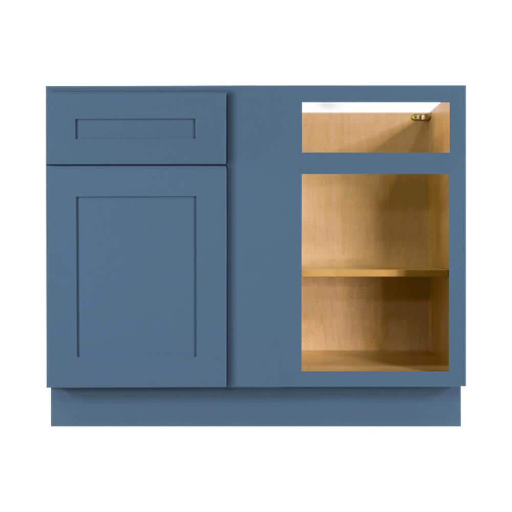 LIFEART CABINETRY Lancaster Blue Plywood Shaker Stock Assembled Blind Corner Kitchen Cabinet (42 in. W x 34.5 in. H x 24 in. D)