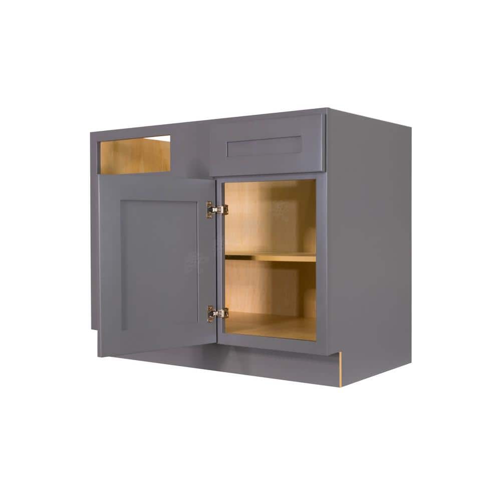 LIFEART CABINETRY Lancaster Gray Plywood Shaker Stock Assembled Base Blind Corner Kitchen Cabinet 39 in. W x 34.5 in. H x 24 in. D