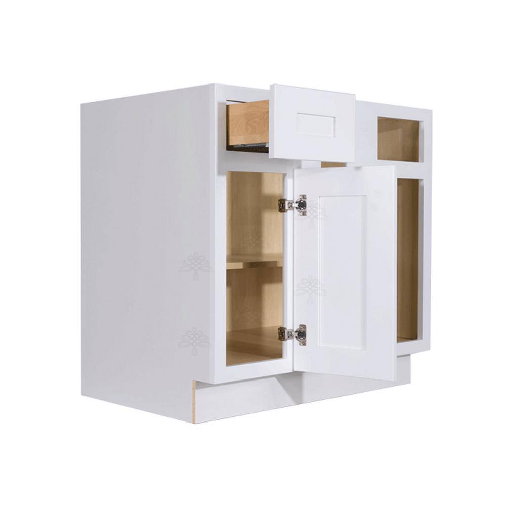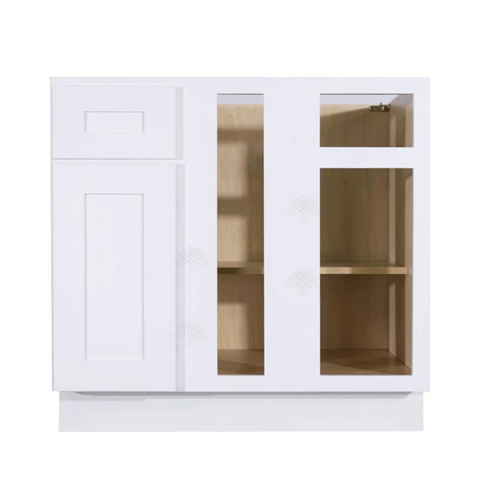 LIFEART CABINETRY Lancaster White Plywood Shaker Stock Assembled Base Blind Corner Kitchen Cabinet 36 in. W x 34.5 in. H x 24 in. D