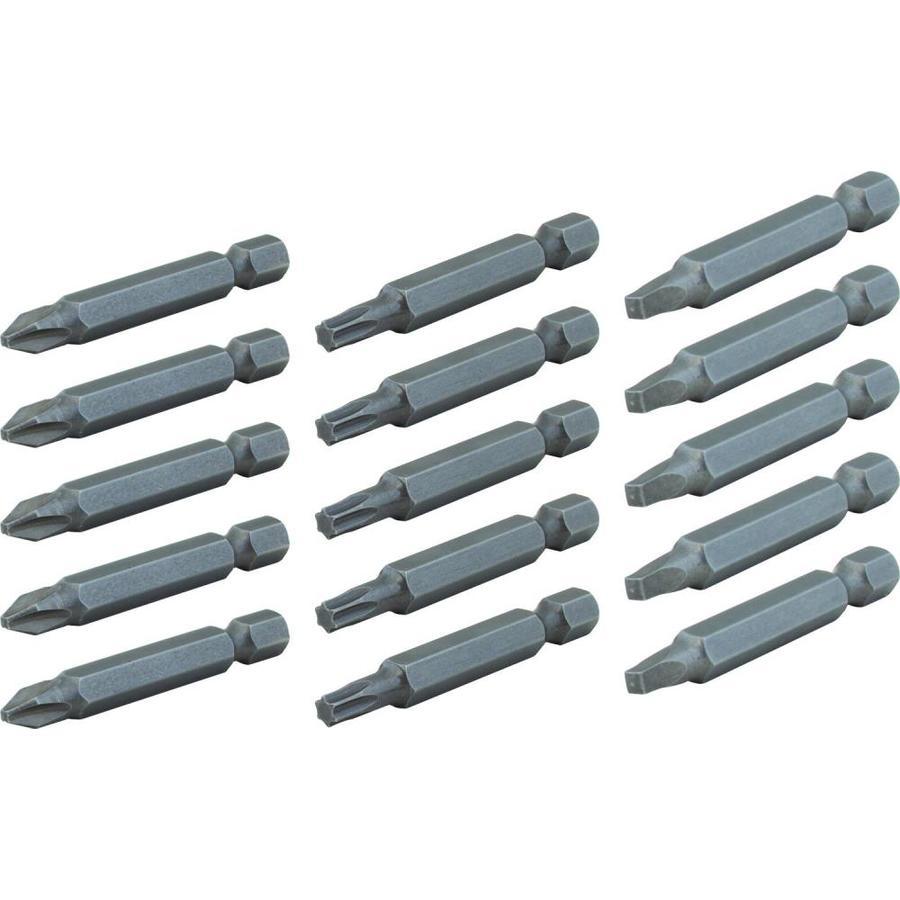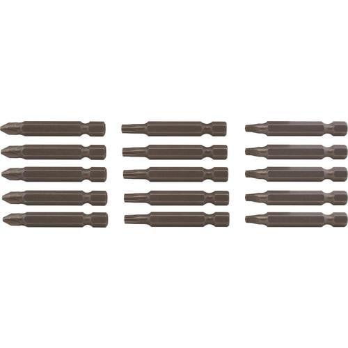 SHOCK RESISTANT: Constructed with shock-RESISTANT tool steel for maximum durability PRECISE FIT: CNC-machined bit tip ensures precise fit in screw heads reducing opportunity for cam-out Common applications include wood, metal Includes (5) 2-in Phillips #2 Power Bits; (5) 2-in Square/Robertson #2 Power Bits; (5) 2-in torx 25 Power Bits