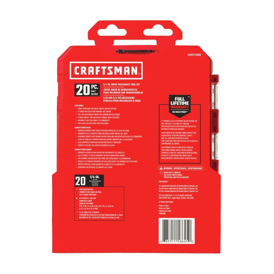 CRAFTSMAN 20-Piece Standard (SAE) and Metric Combination Polished Chrome Mechanics Tool Set