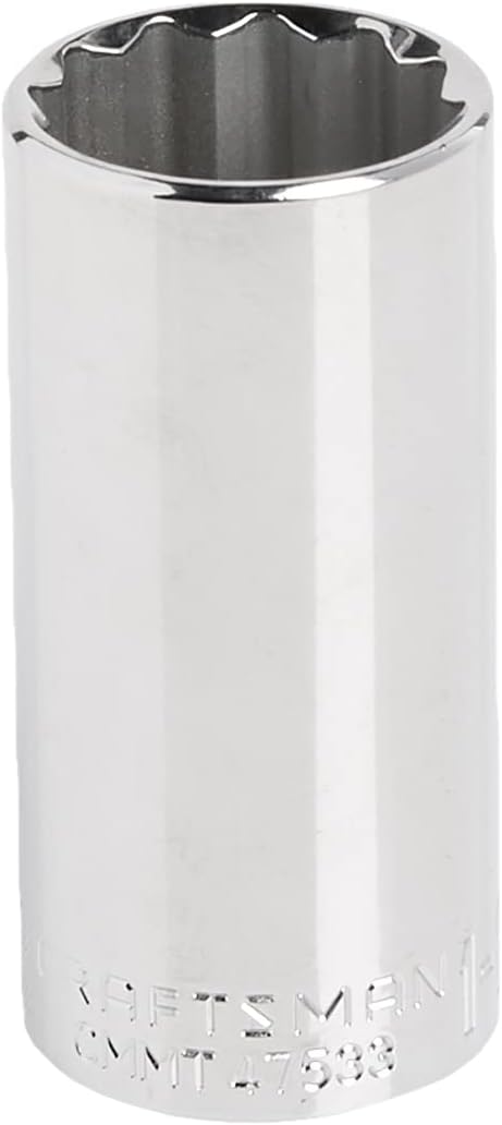 This Craftsman deep socket delivers reliable reach and grip for larger SAE fasteners. The 12-point design ensures quick engagement, while a full-polish chrome finish resists corrosion for long-lasting performance with 1/2-inch drive tools.