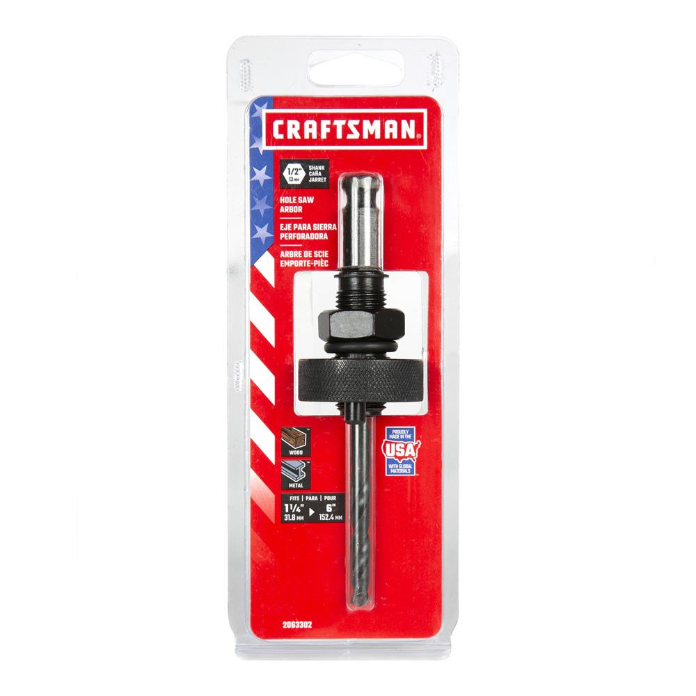 This CRAFTSMAN hole saw arbor features hardened carbon steel construction for added durability and a split-point pilot drill for fast, accurate starts. The 1/2-in hex shank resists stripping and fits hole saws from 1-1/4-in to 6-in for versatile cutting across materials.