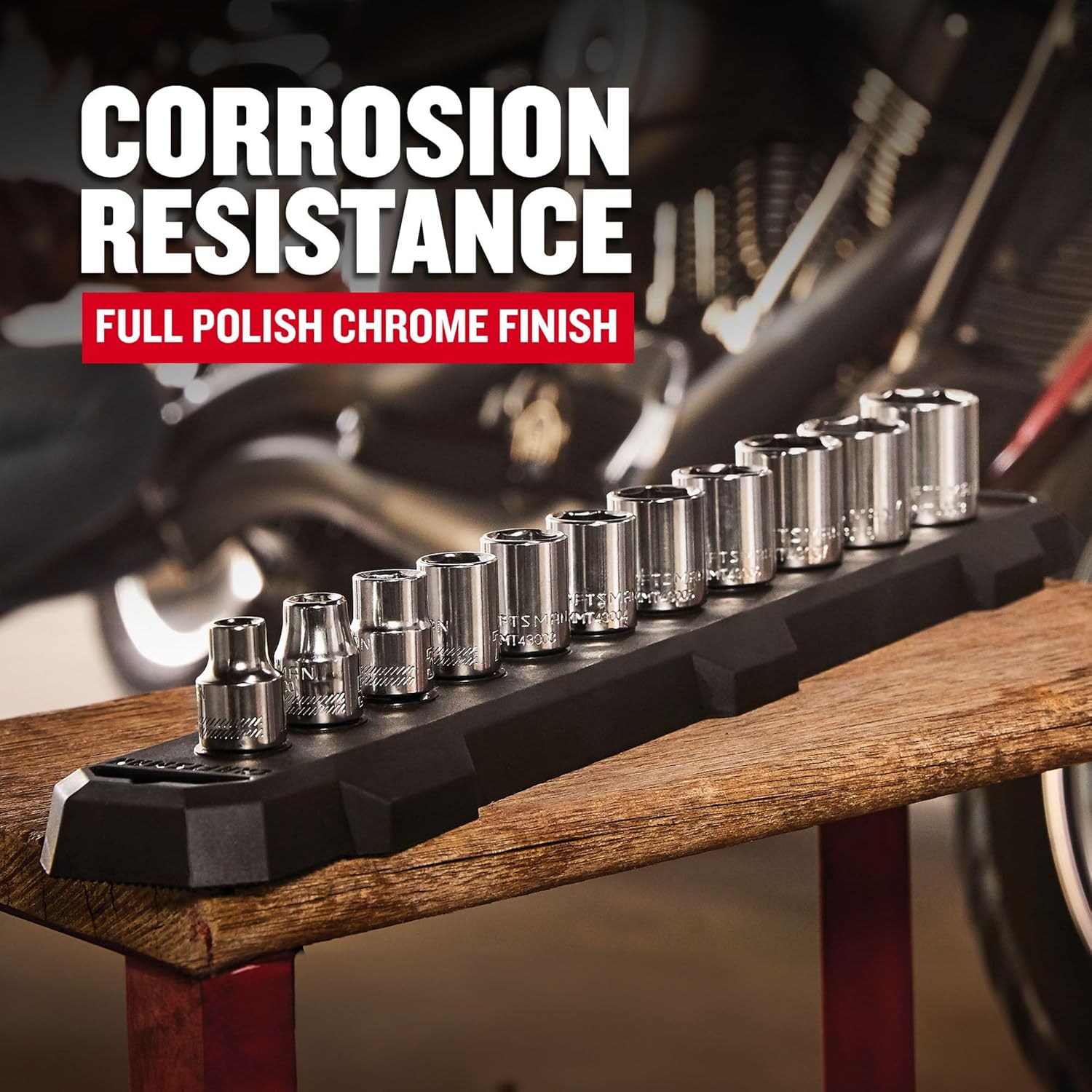 This refined 10mm socket brings a crisp, chrome sheen that elevates the everyday mechanic’s ritual. The bold, oversized markings are a design flourish that also streamlines workflow. Style it on a magnetic rail for a tidy, gallery-like display of your most-used pieces. A compact, high-performance tool that embodies functional luxury in the workshop.