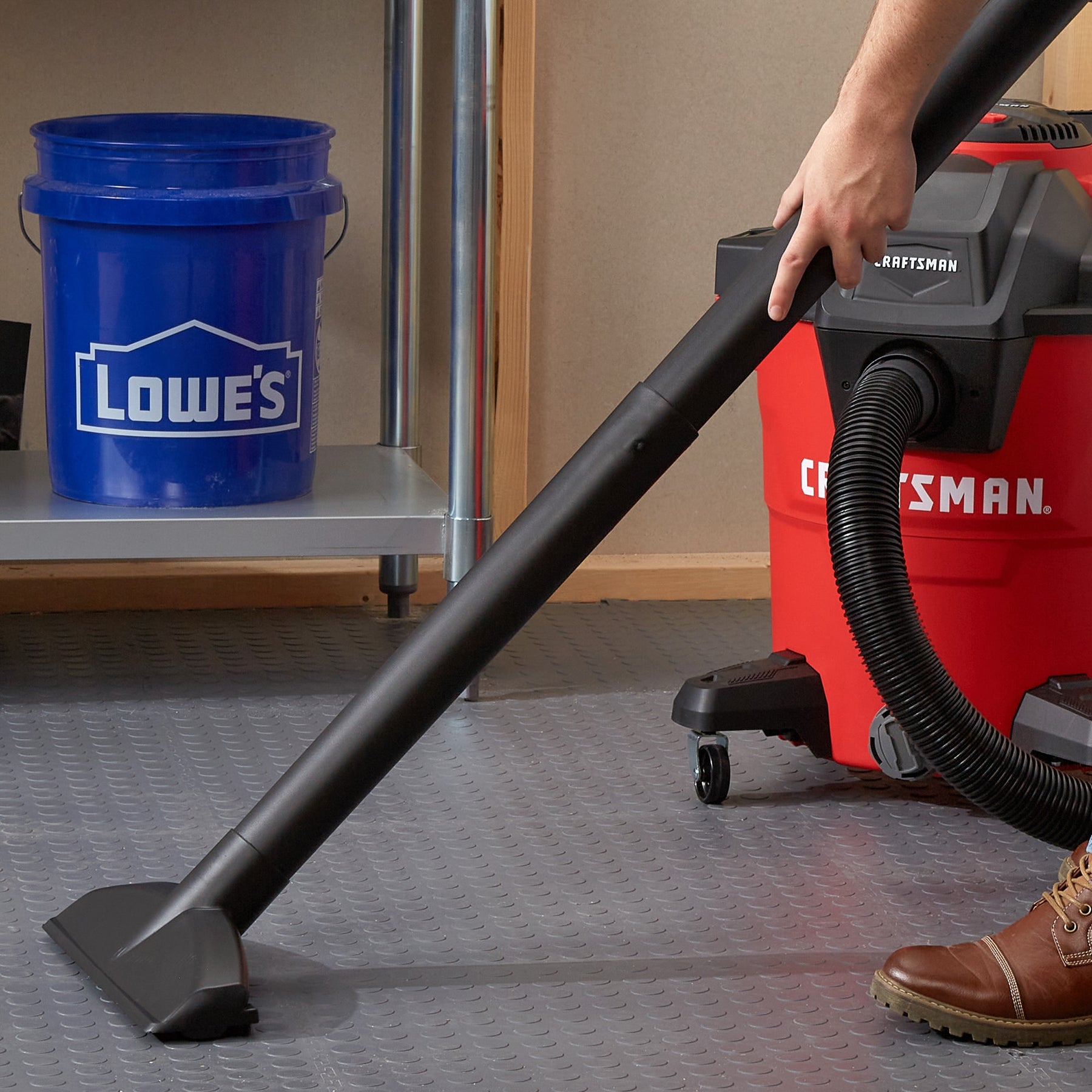 Tackle workshop, garage, and jobsite messes with the CRAFTSMAN 12-gallon wet/dry vac. A 6 peak HP motor delivers strong suction and the detachable blower clears leaves and debris outside. Built-in storage, a large 2-1/2 in. hose system, and a tank drain make cleanup and maintenance easy.