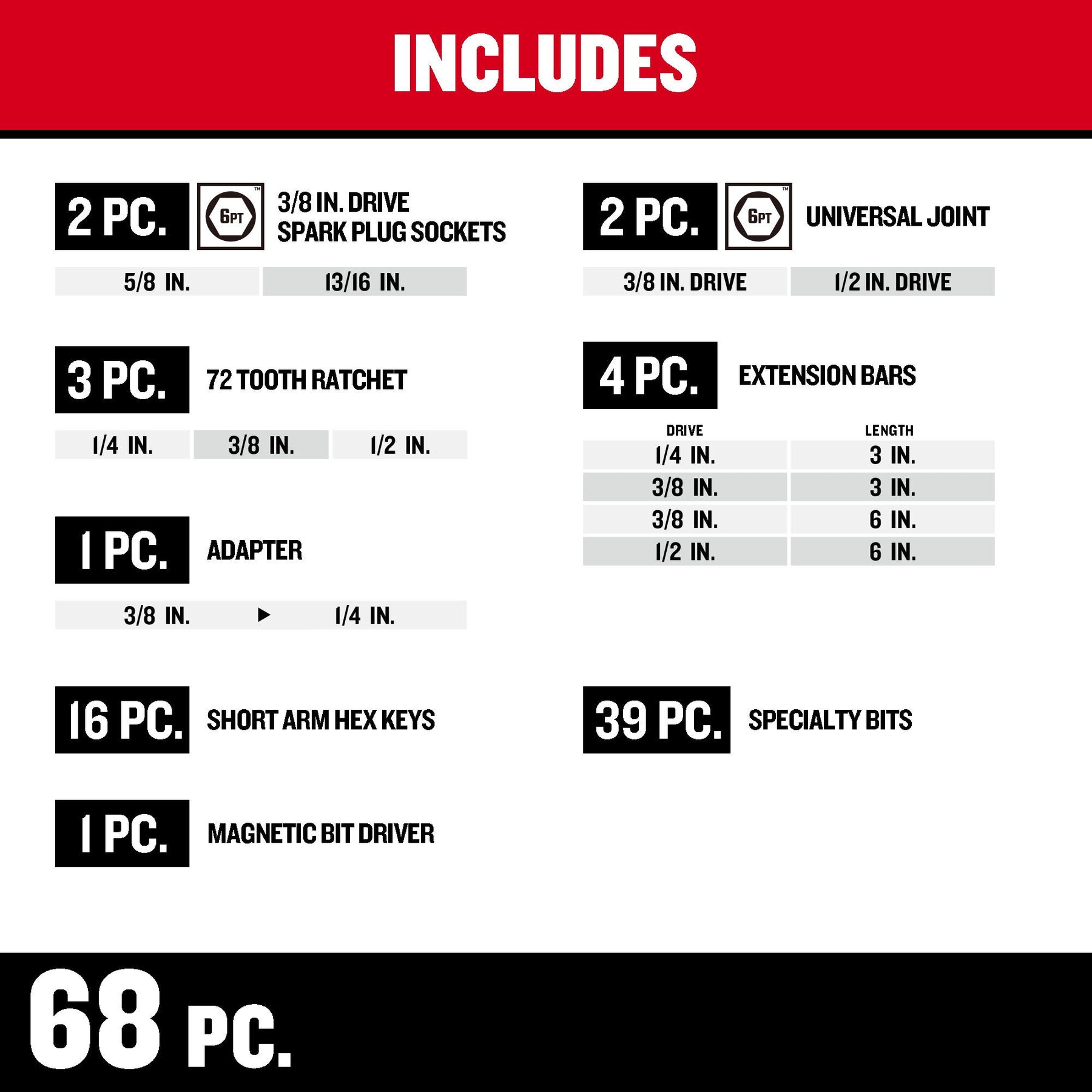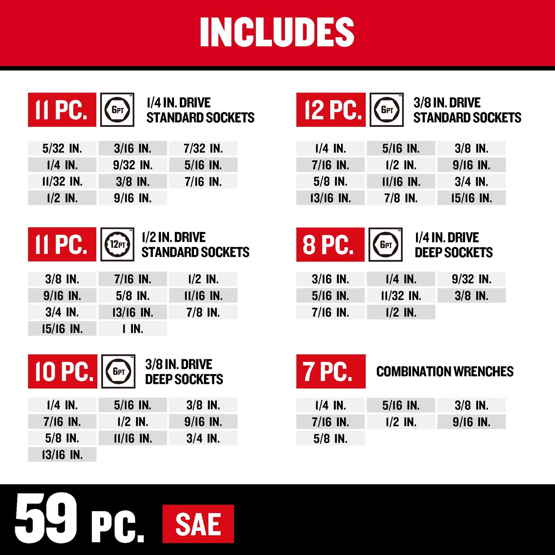 • Wide Coverage: 189 pieces with SAE and metric sizes, including deep and shallow sockets, wrenches, hex keys, and specialty bits.