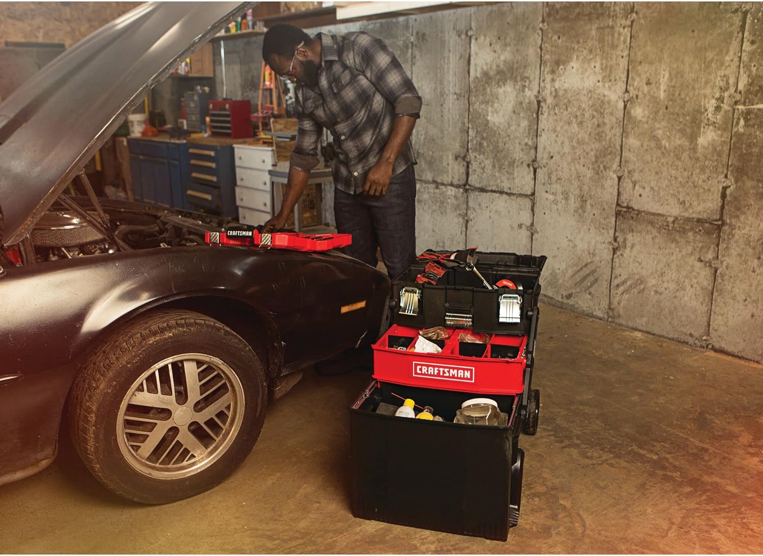 CRAFTSMAN 22-in Multi-Level Rolling Tool Box with Wheels, Black/Red, Lockable, CMST20880