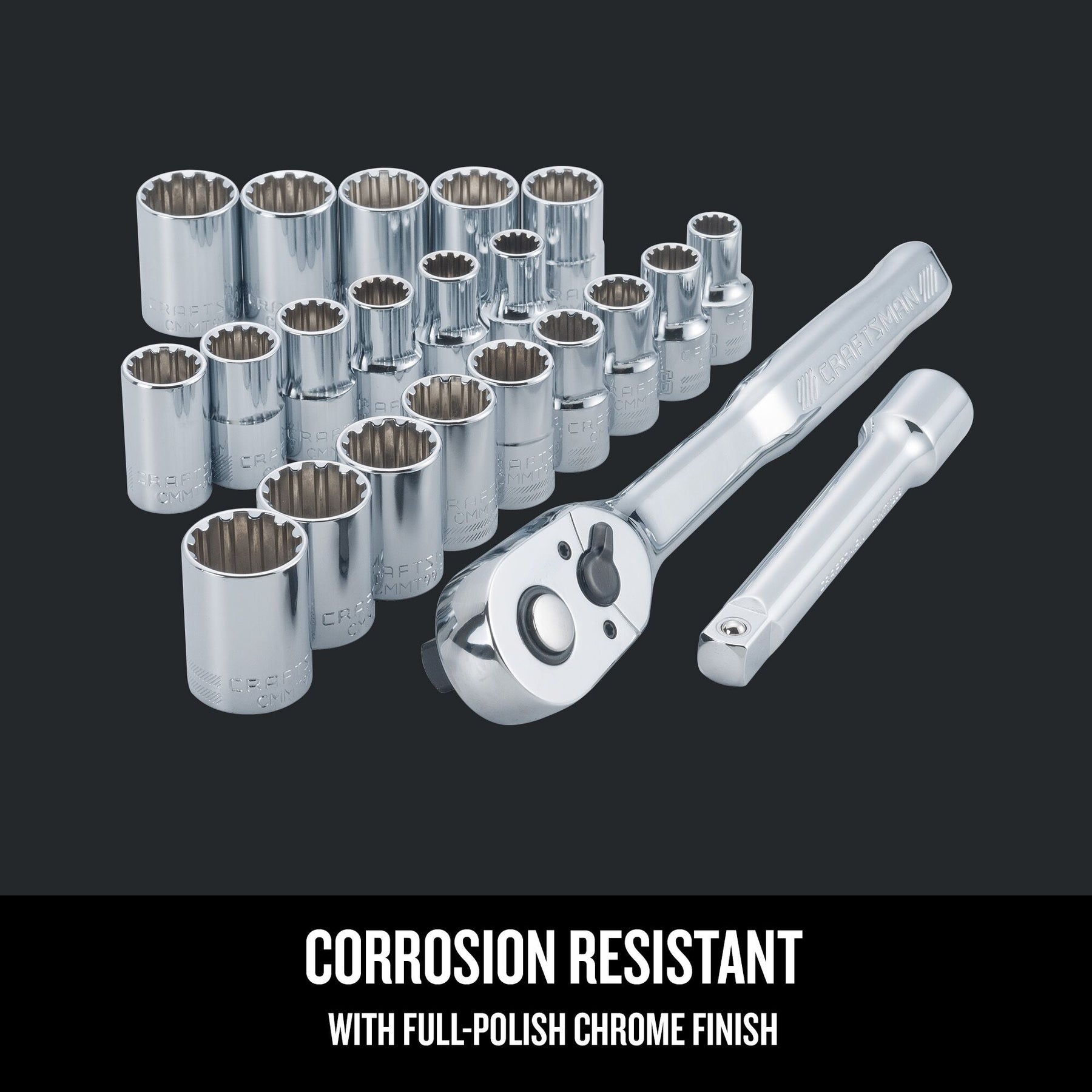 | Includes | (1) 1/2-in drive ratchet, (1) 1/2-in drive 5-in extension, (20) 1/2-in sockets |
