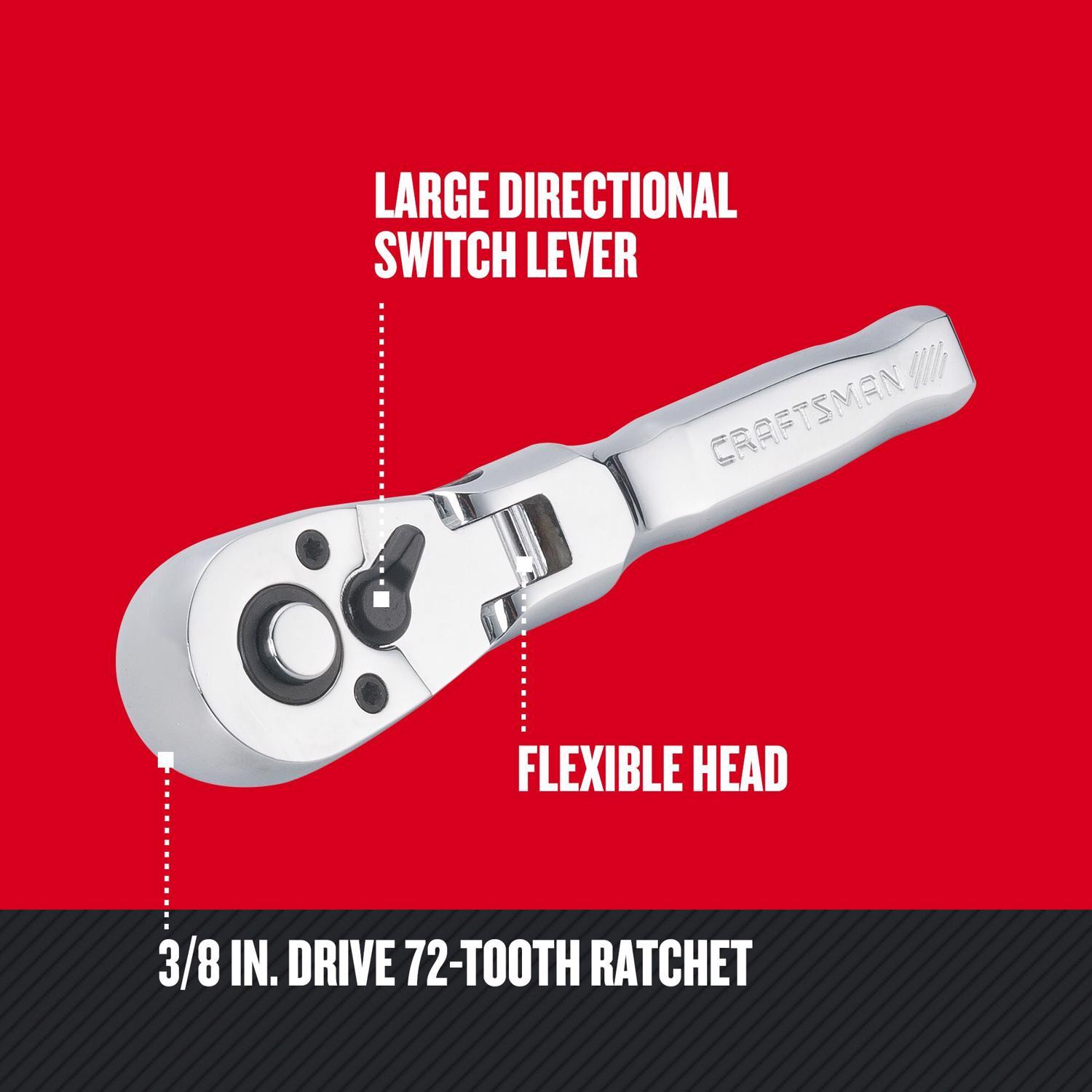 Craftsman 3/8 in. Drive Metric and SAE Flex Head Stubby Ratchet, 72 Teeth