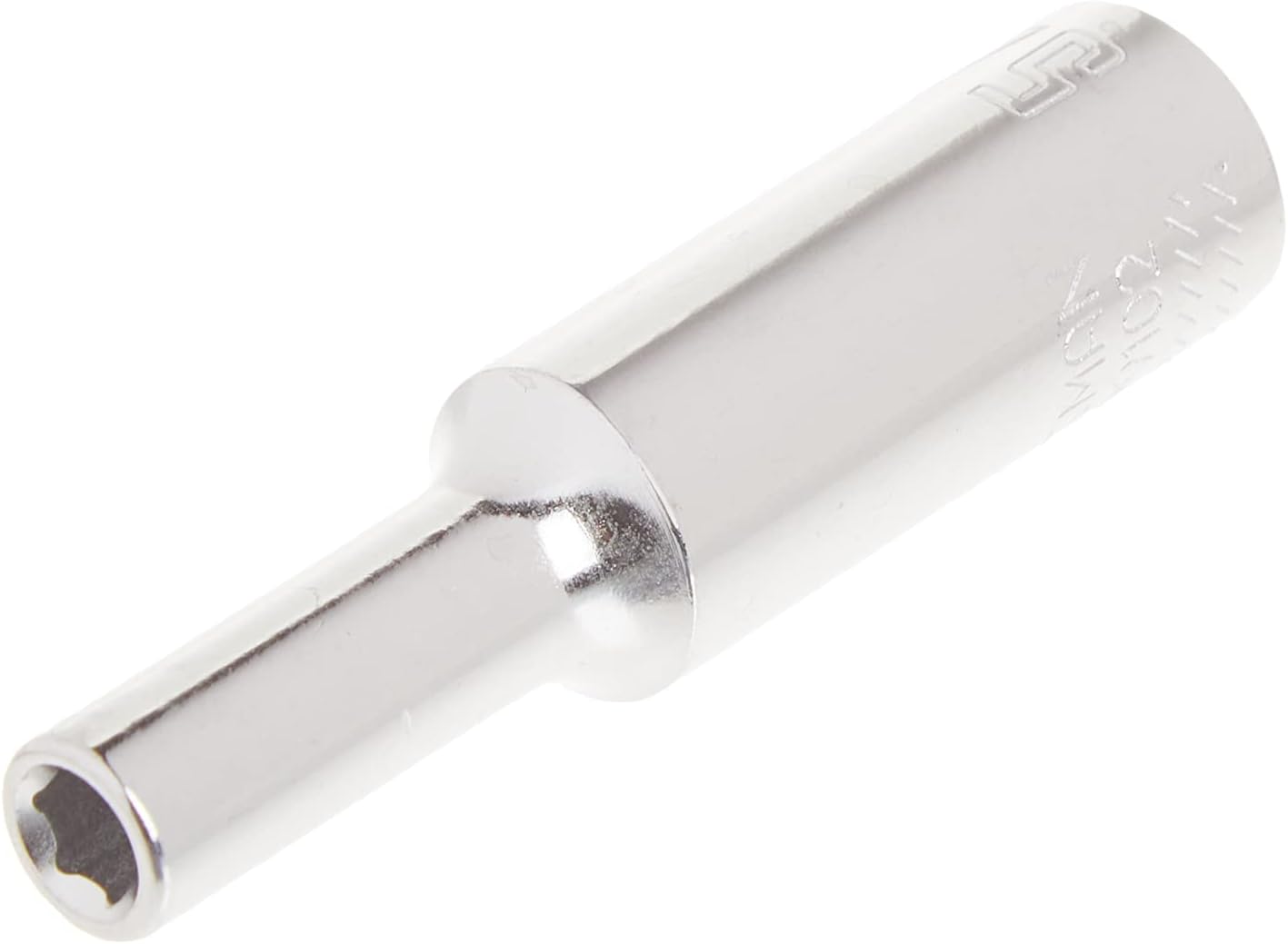 Like a sleek piece of jewelry for your toolkit, this deep socket brings refined shine and purpose to tight spaces. The elongated silhouette and bold size mark offer both beauty and function, slipping into recessed hardware with ease. Pair it with a streamlined 1/4-inch ratchet on a pegboard for a crisp, curated workshop wall. It’s a small essential that elevates everyday tasks with a touch of luxe practicality.