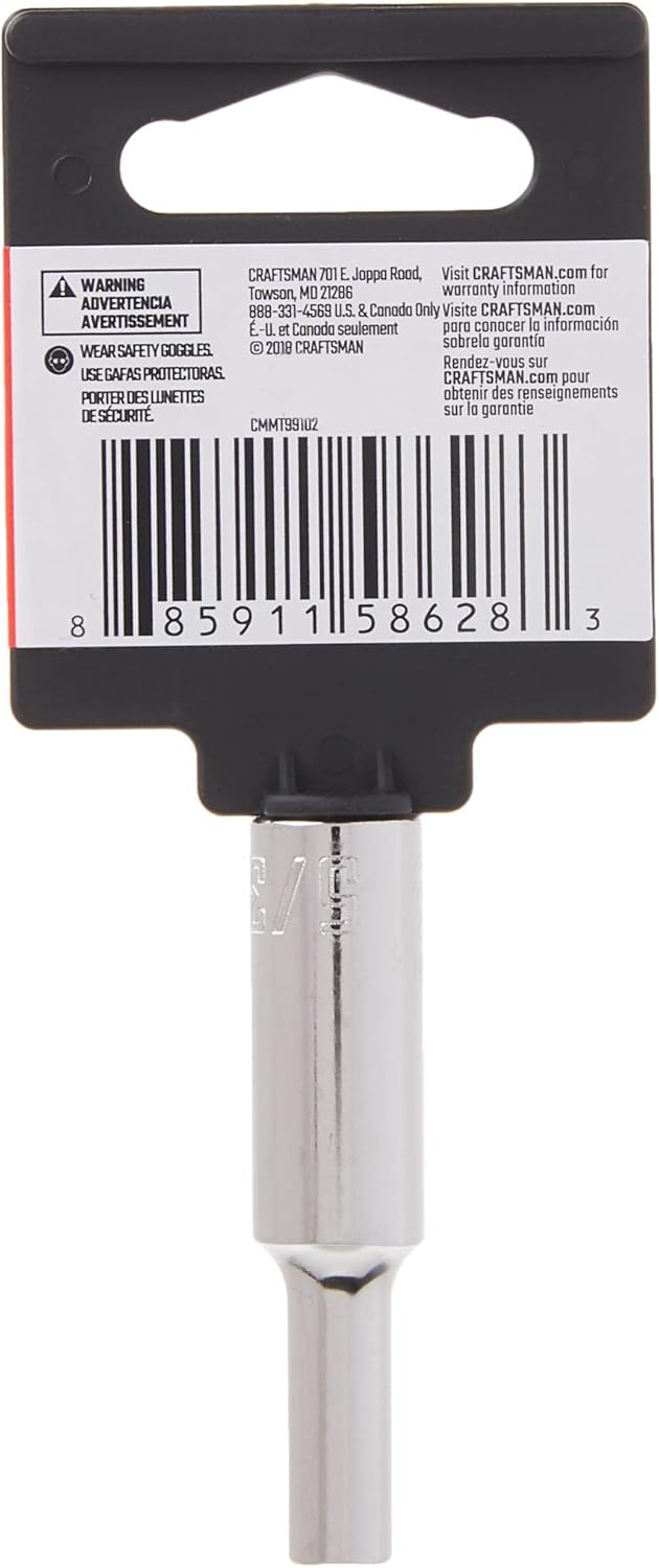 This Craftsman deep socket reaches recessed fasteners and delivers secure 6-point grip to reduce rounding. The polished chrome finish resists corrosion and the large size markings make identification quick in the toolbox.