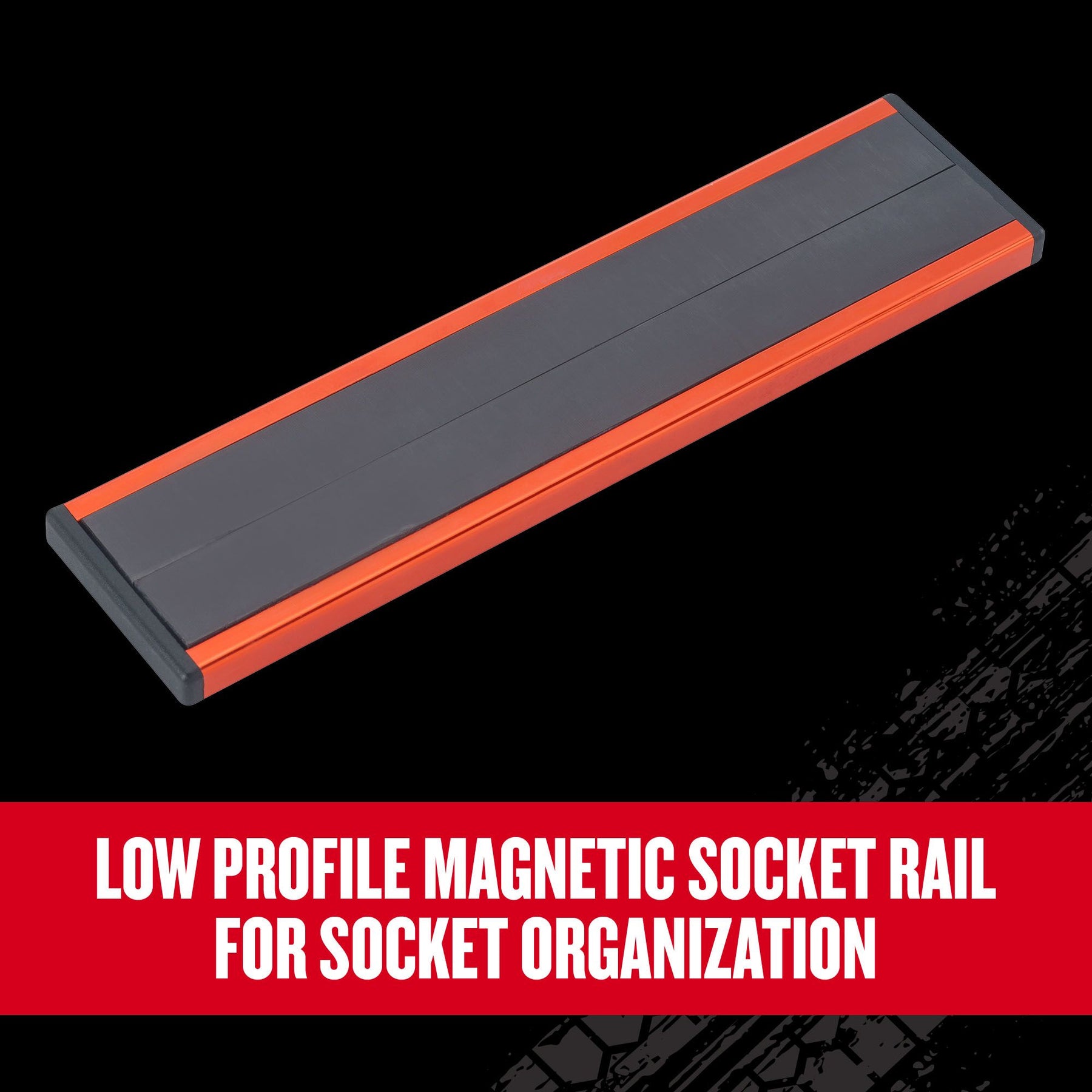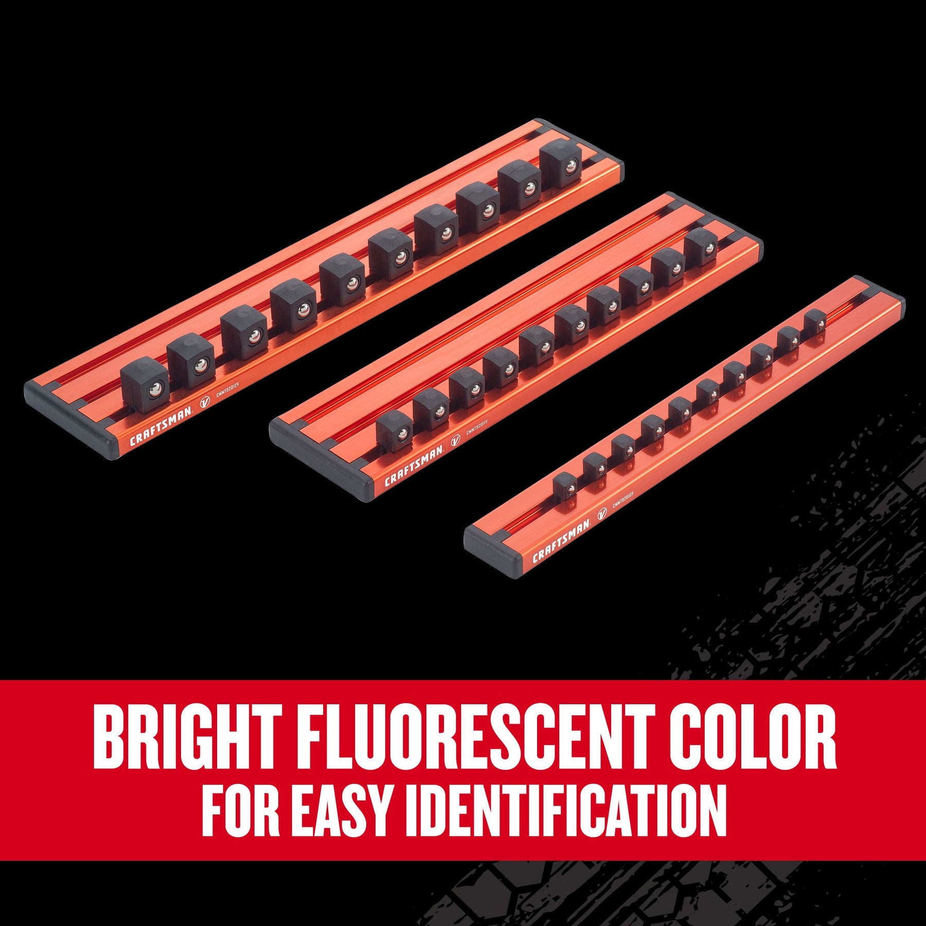 Organize your sockets with the CRAFTSMAN V‑Series 3-piece magnetic rail set. Bright orange metal rails with low-profile magnets keep sockets secure and visible, while replaceable mounting squares let you customize your layout.