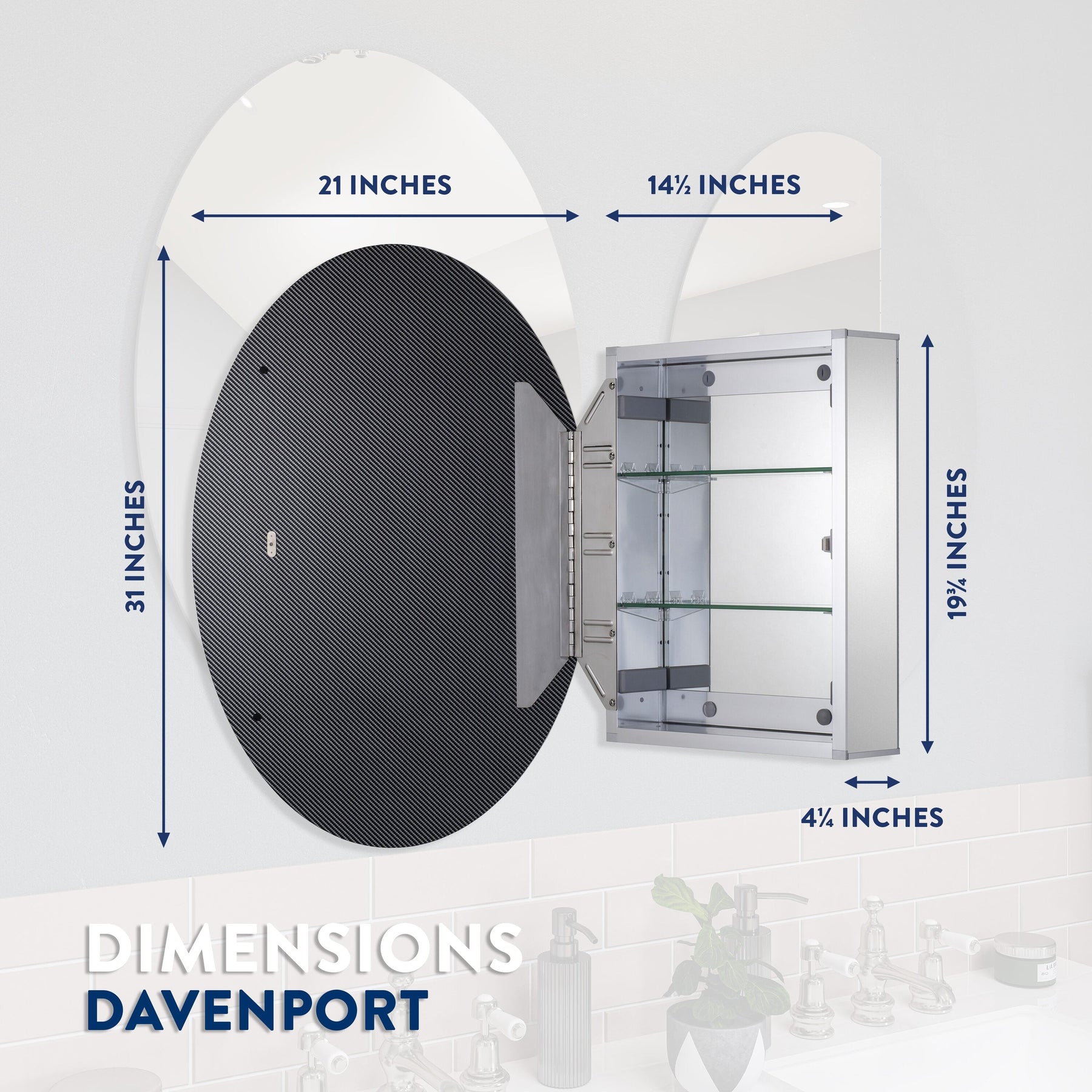 Croydex 21-in x 31-in Surface/Recessed Mount Silver Mirrored Oval Medicine Cabinet