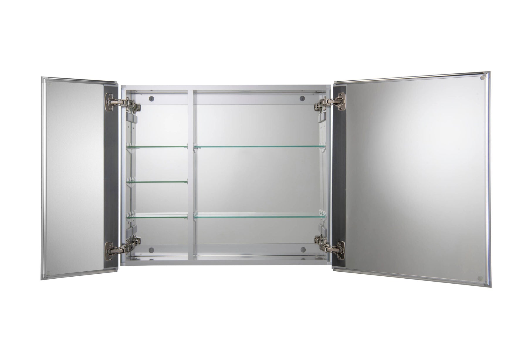 • Elegant Design: Frameless, mirrored double doors with optional chrome-plated pin handle enhance any bathroom aesthetics.