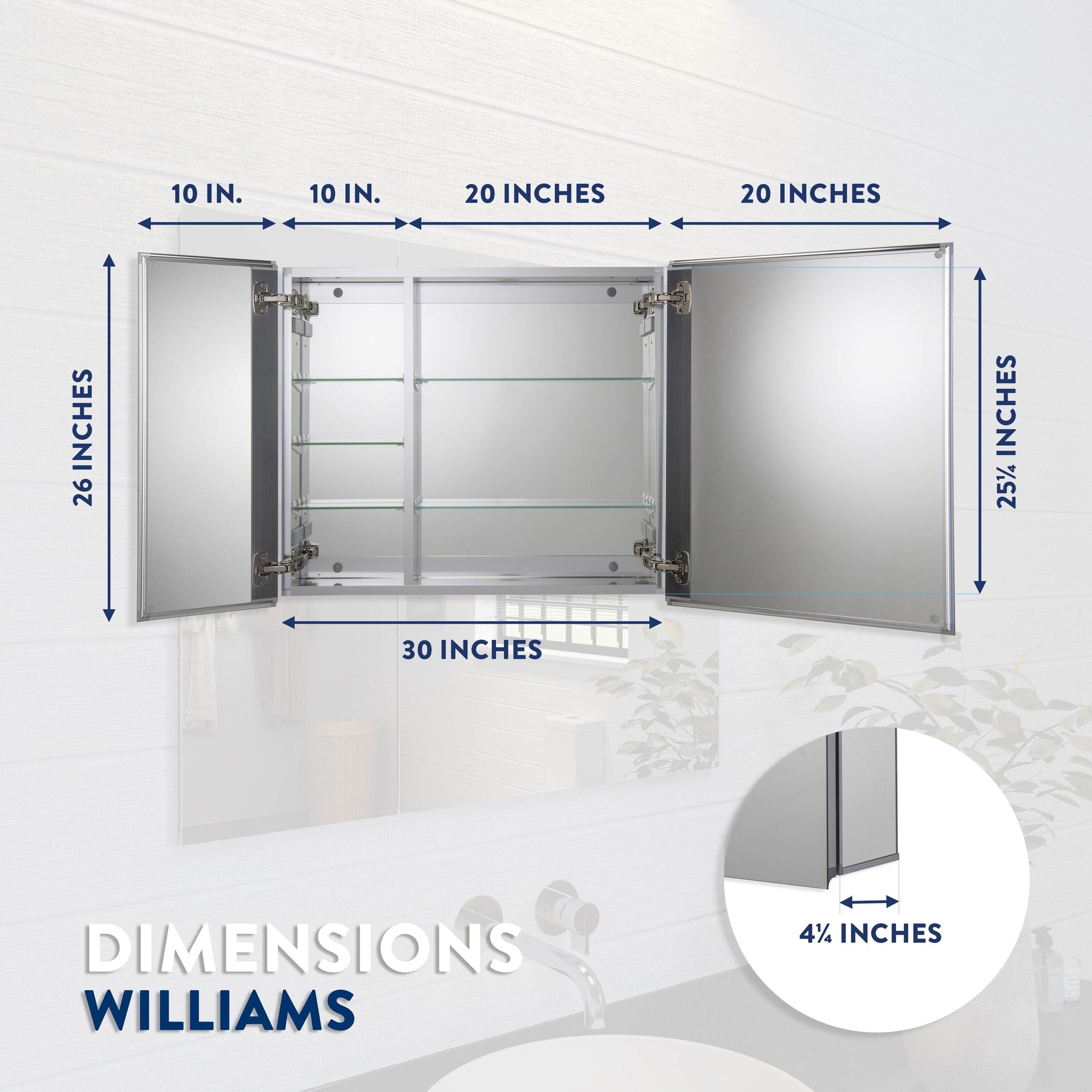 Croydex 30-in x 26-in Surface/Recessed Mount Silver Mirrored Soft Close Medicine Cabinet