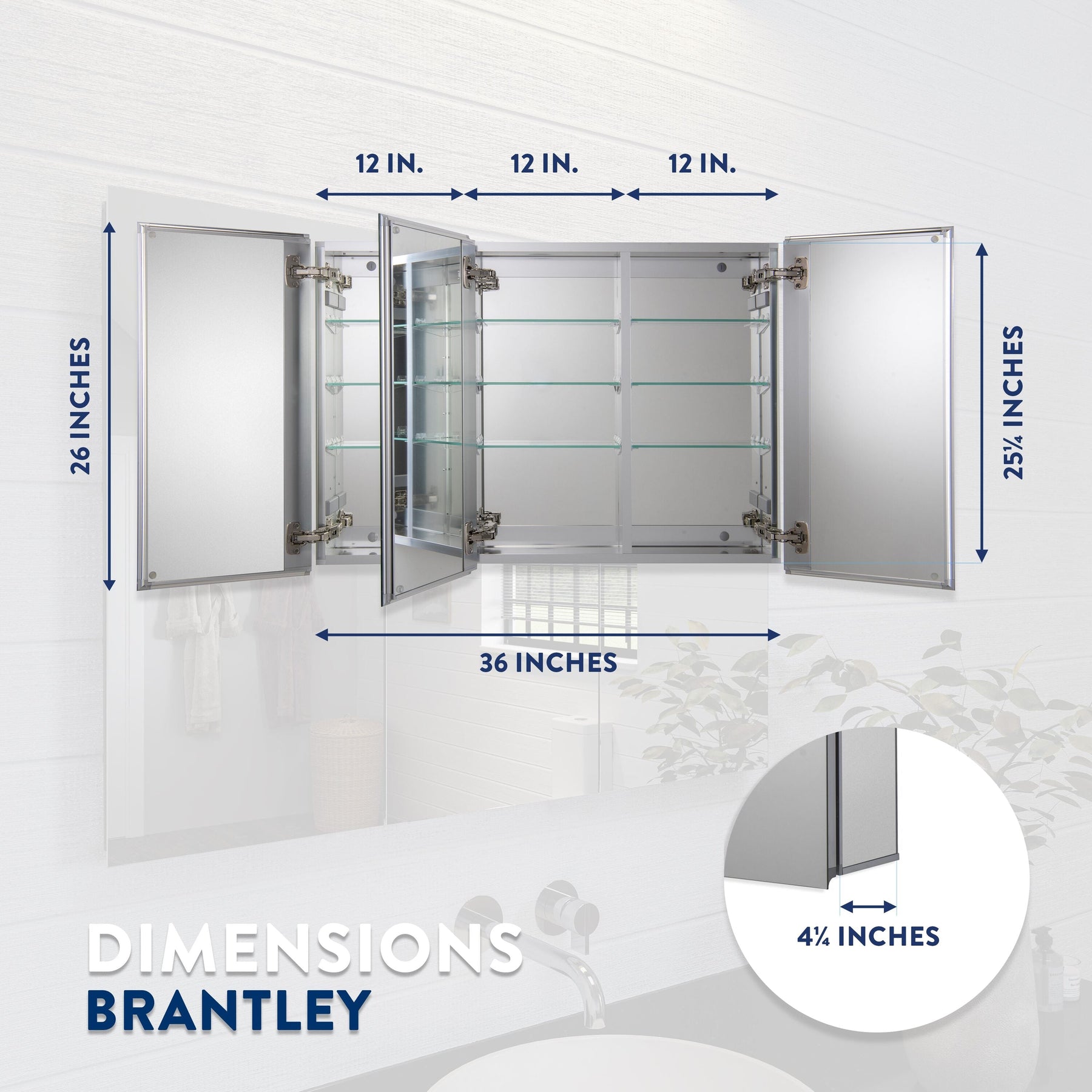Silver Mirrored Soft Close Medicine Cabinet, 36x26 inches