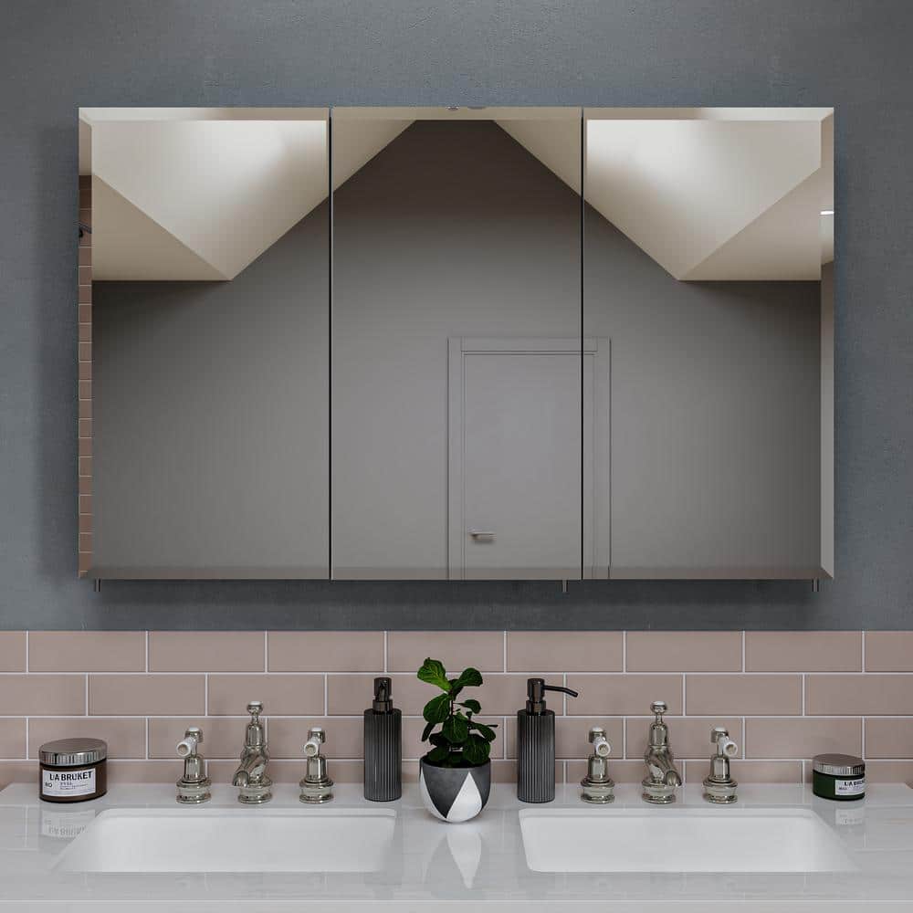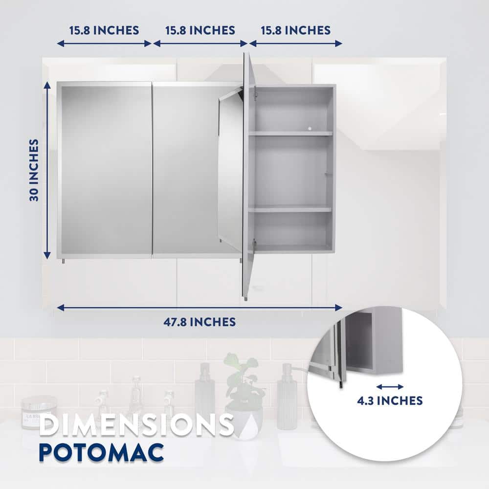 Croydex Potomac 48 in. W x 30 in. H Triple Door White Steel Surface Mount Medicine Cabinet with Mirror