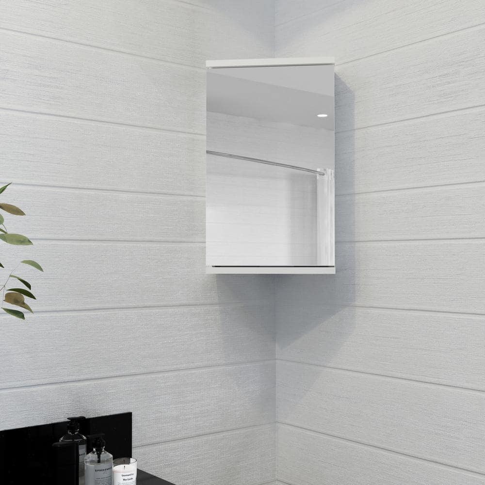 White Corner Bathroom Medicine Cabinet with Mirror