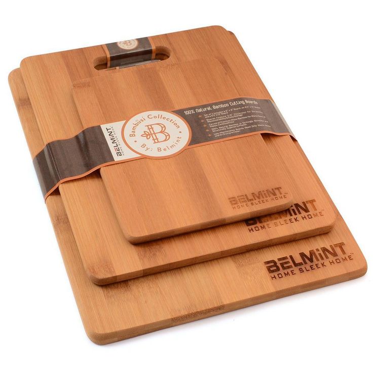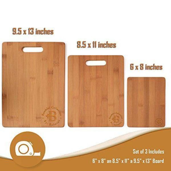 3-Piece Bamboo Cutting Board Set - Wooden Kitchen Boards for Food Prep. 3 sizes 9.5 x 13, 8.5 x 11 and 6 x 8.