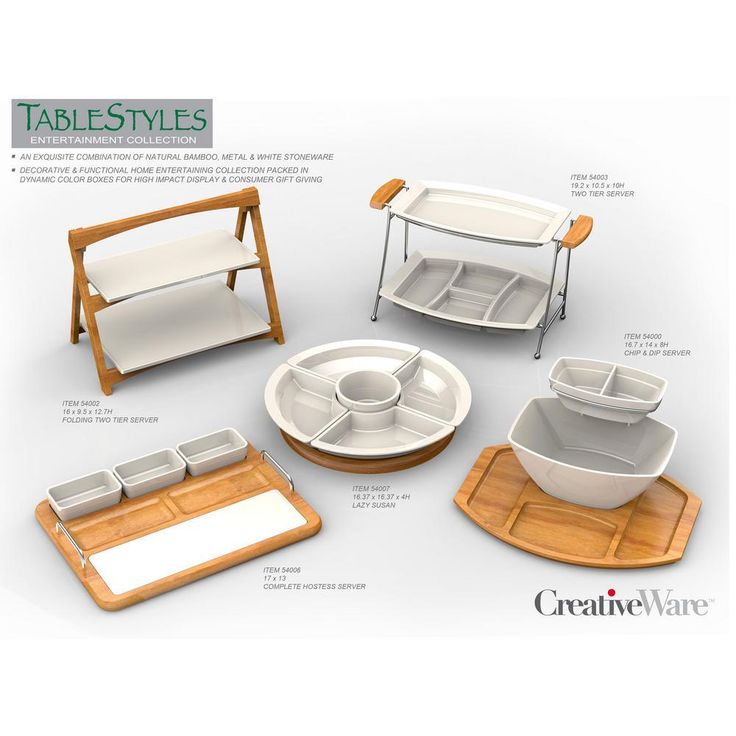 CreativeWare 'TableStyles' Bamboo and Ceramic Hostess Server with Serving Bowls and Cutting Board