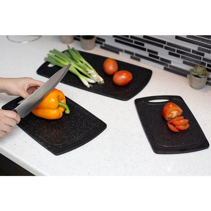 3-Piece Black Plastic Double Sided Granite Look Non-Slip Cutting Board Set with Deep Juice Groove and Easy Grip Handle