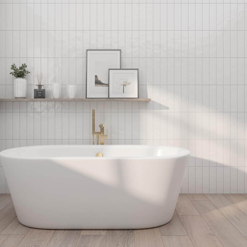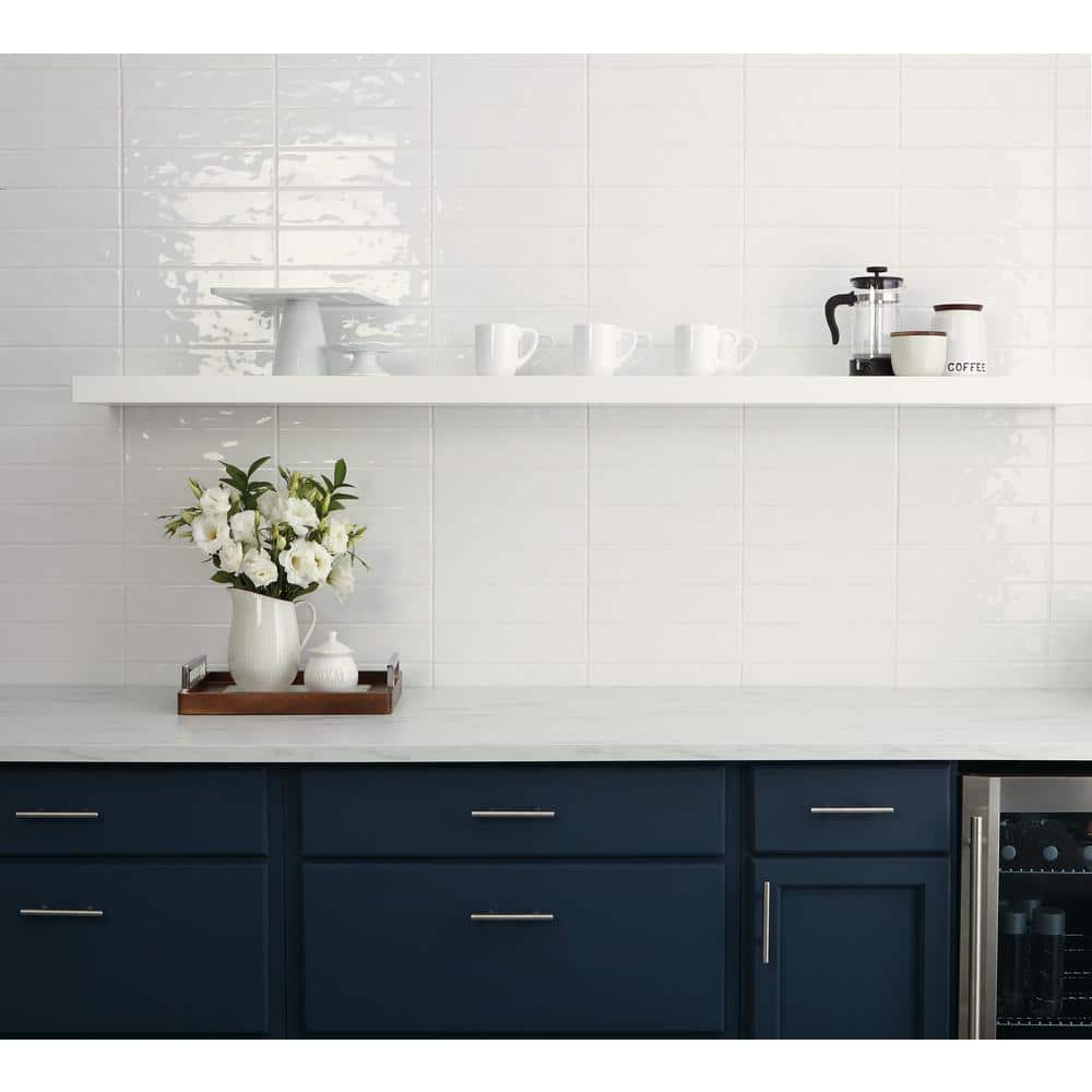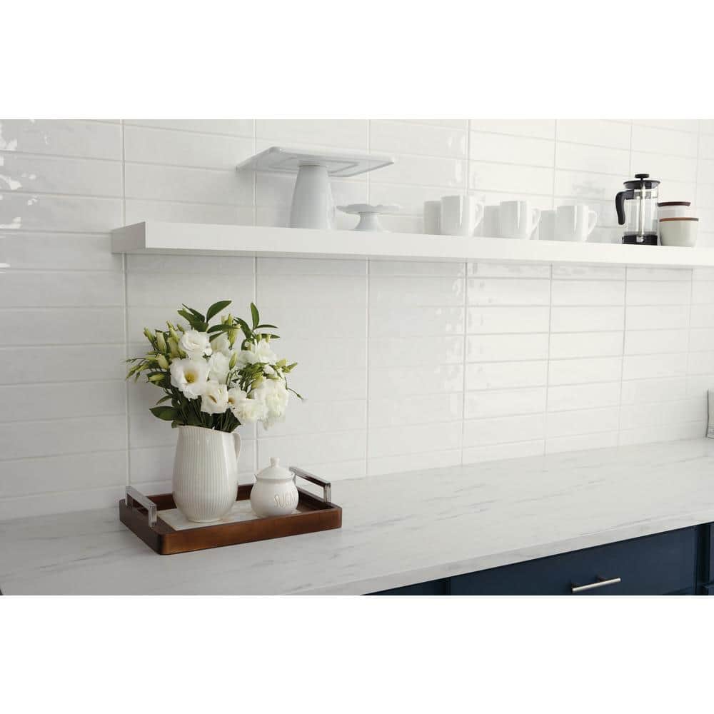 Handmade-look glossy ceramic subway tiles bring a crisp white finish to backsplashes and shower walls. Each 3x12 tile features pressed edges and built-in lugs for easy grout alignment, offering durable, low-maintenance style for residential or light commercial spaces.