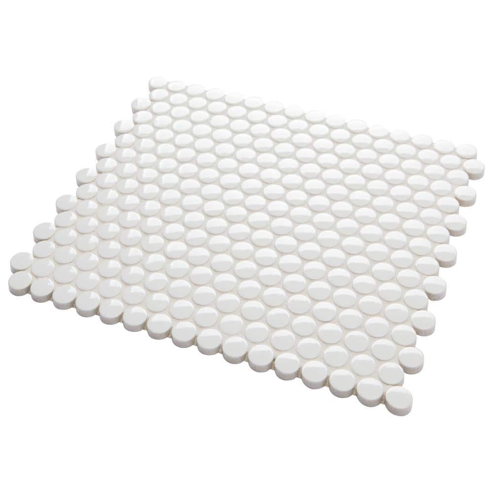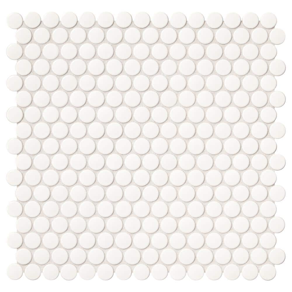 Daltile Finesse Glossy White 12 in. x 13 in. x 6.35 mm Porcelain Penny Round Mosaic Wall Tile (1.06 sq. ft. per piece)