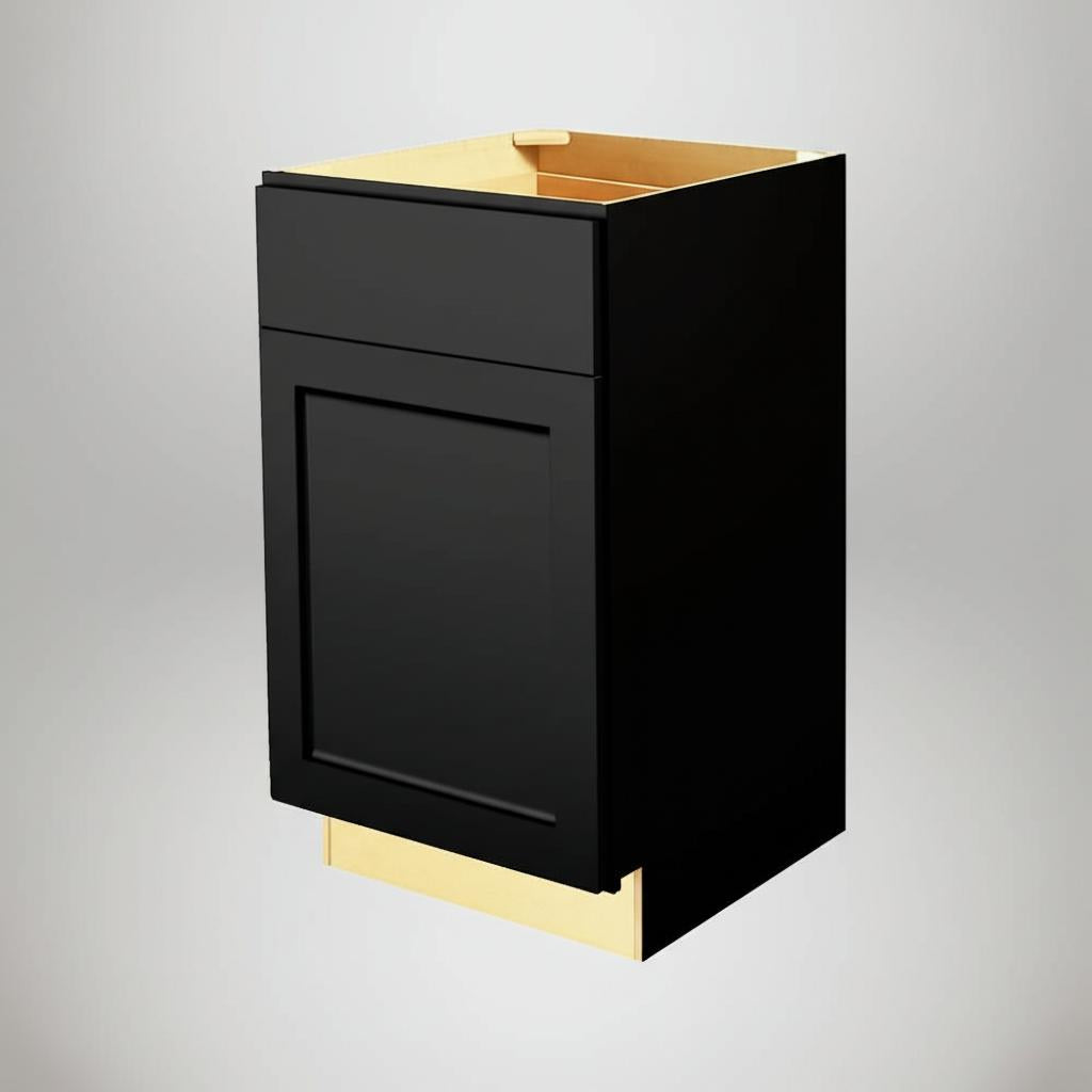 The Hampton Bay Avondale Shaker Base Cabinet in Raven Black combines sleek design with durable plywood construction. Featuring soft-close mechanisms and adjustable shelving, this cabinet is perfect for modern kitchens.