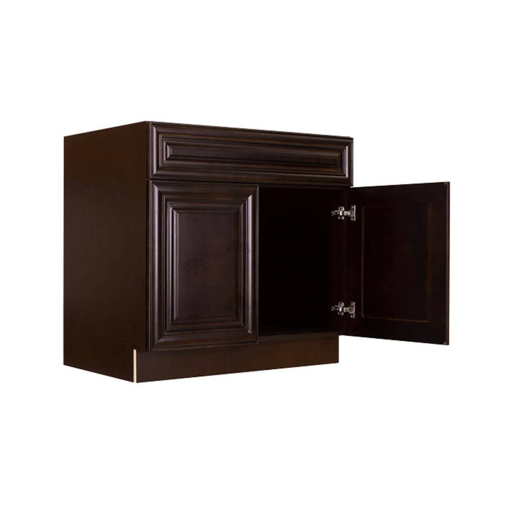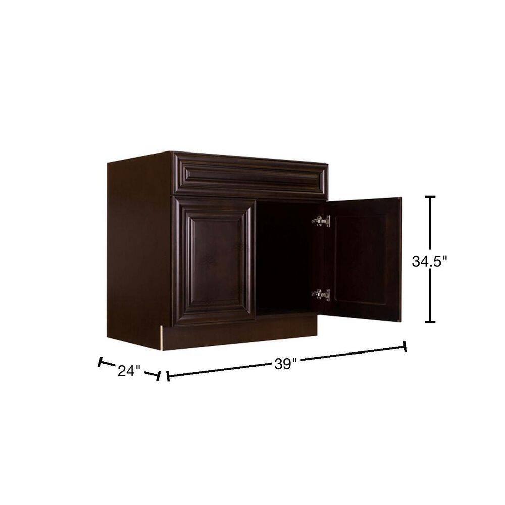 LIFEART CABINETRY Edinburgh Espresso Plywood Raised Panel Stock Assembled Sink Base Kitchen Cabinet (39 in. W x 34.5 in. H x 24 in. D)