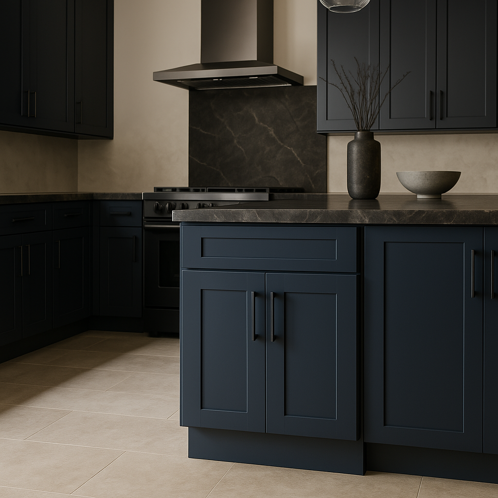 Upgrade your kitchen with the stylish and durable Valencia Blue Shaker Base Cabinet today!