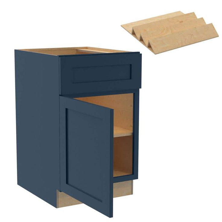 Elevate your kitchen design with the Newport Assembled Plywood Base Kitchen Cabinet by Home Decorators Collection. This Mythic Blue cabinet combines classic shaker style with modern convenience, featuring soft-close doors and drawers and all-plywood CARB compliant construction ensuring both beauty and durability.